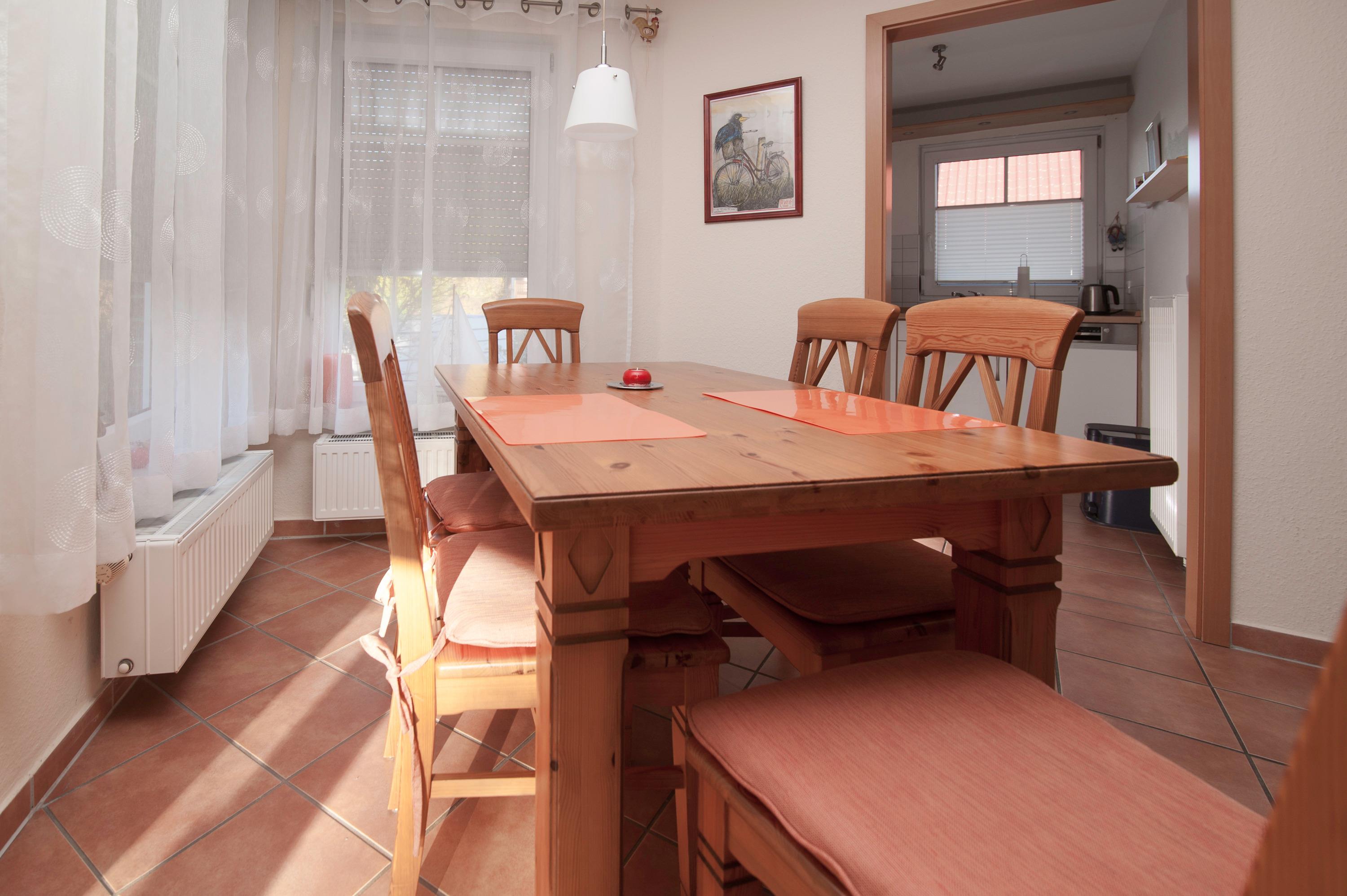 Doppelhaushälfte (75 qm), für 2 - 4 Personen komfortabel und liebevoll eingerichtet. Vom Haus aus sind es nur ein paar Schritte - und Sie sind auf dem Deich! 1 PKW-Stellplatz steht zur Verfügung. Es hat eine Terrasse mit Gartenmöbeln. Abschließbarer gemauerter Anbau am Haus steht zum sicheren einstellen und laden von Fahrrädern zur Verfügung.