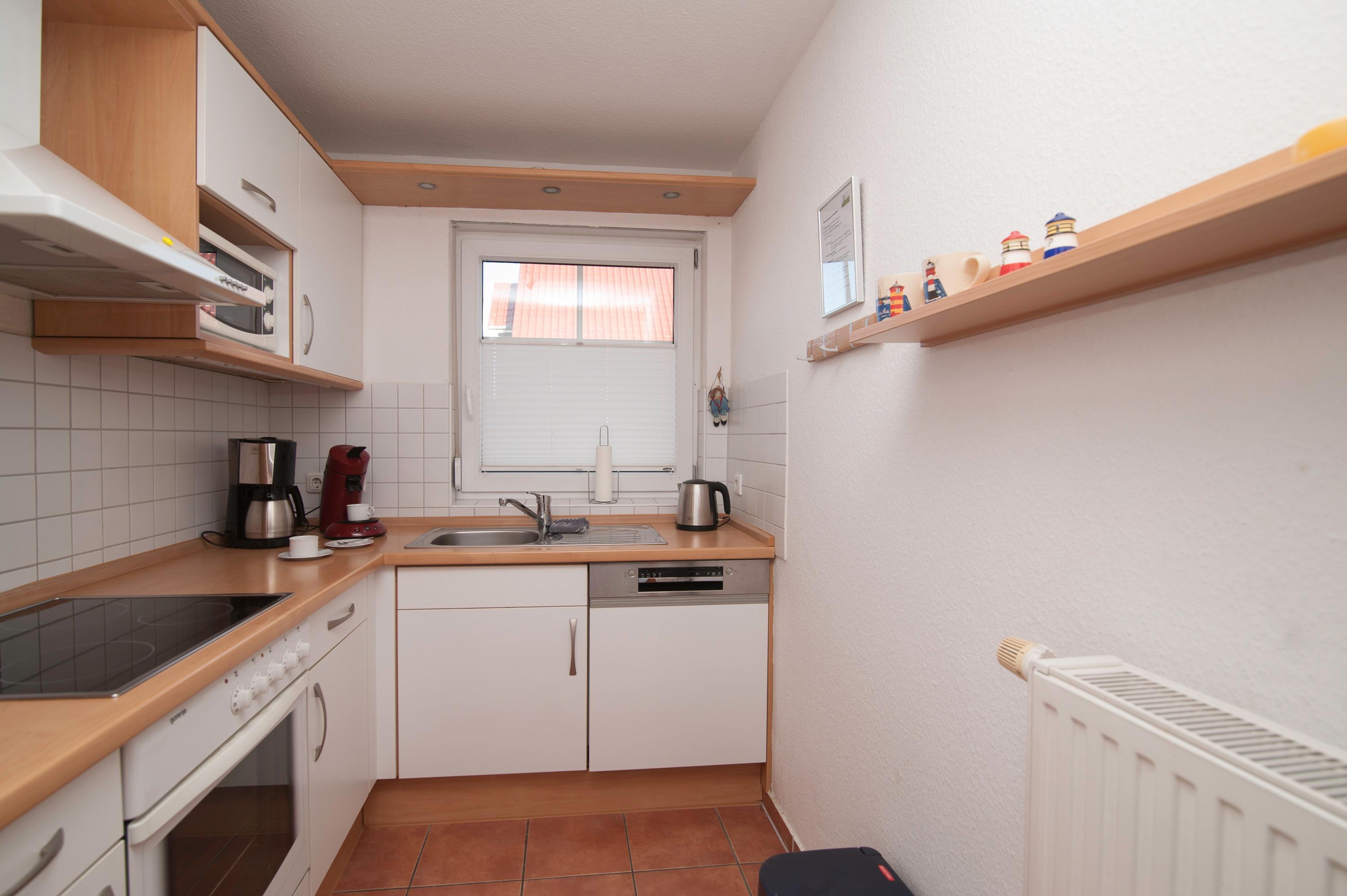 Einbauküche komplett ausgestattet, u.a. Herd mit Cerankochfeld, Dunstabzugshaube, Geschirrspüler, Mikrowelle, Kühlschrank mit Gefrierfach, Filterkaffee + Kaffeepadmaschine, Toaster und vielem mehr. Das Erdgeschoß ist komplett gefliest und verfügt über Fußbodenheizung.