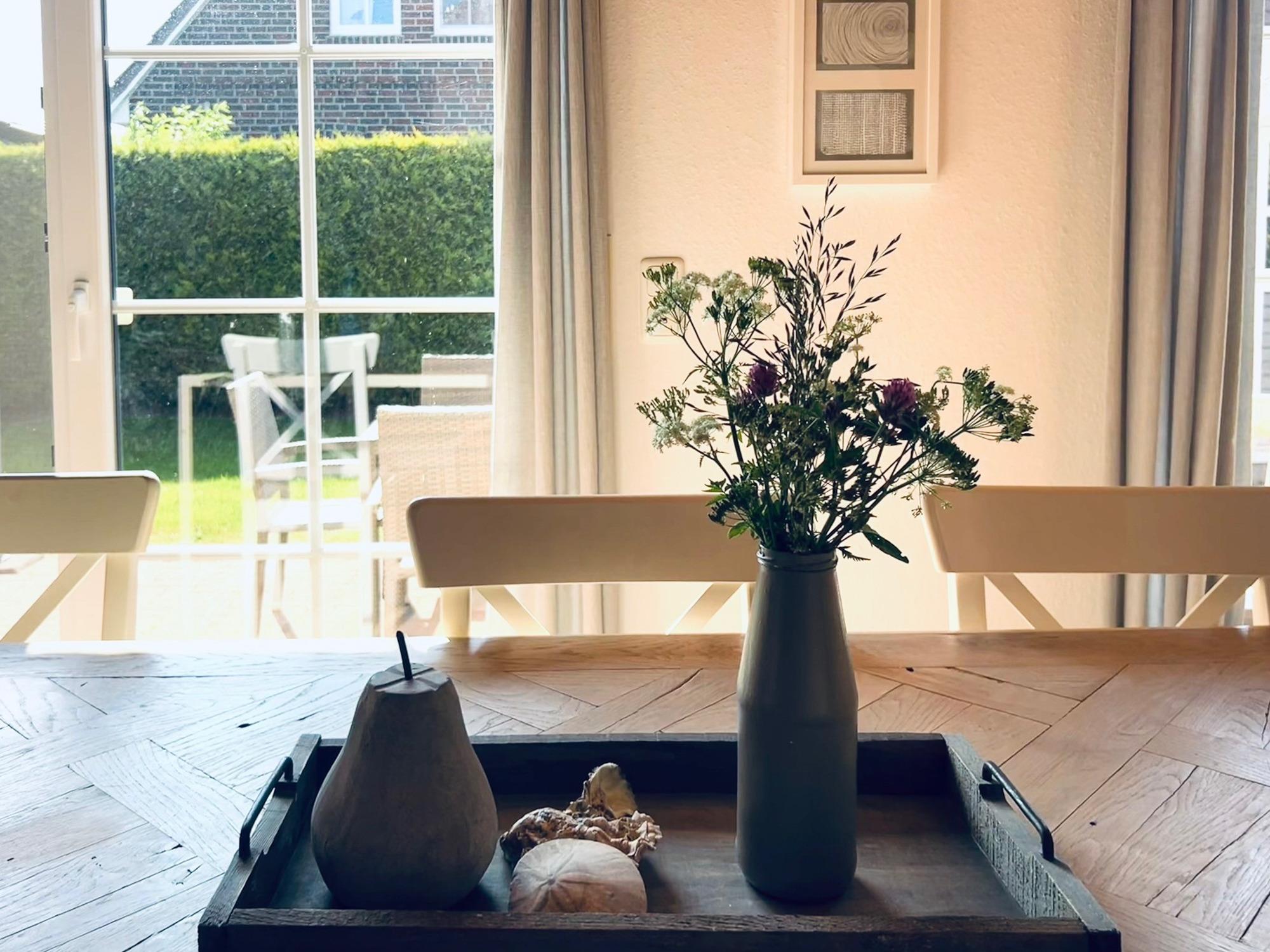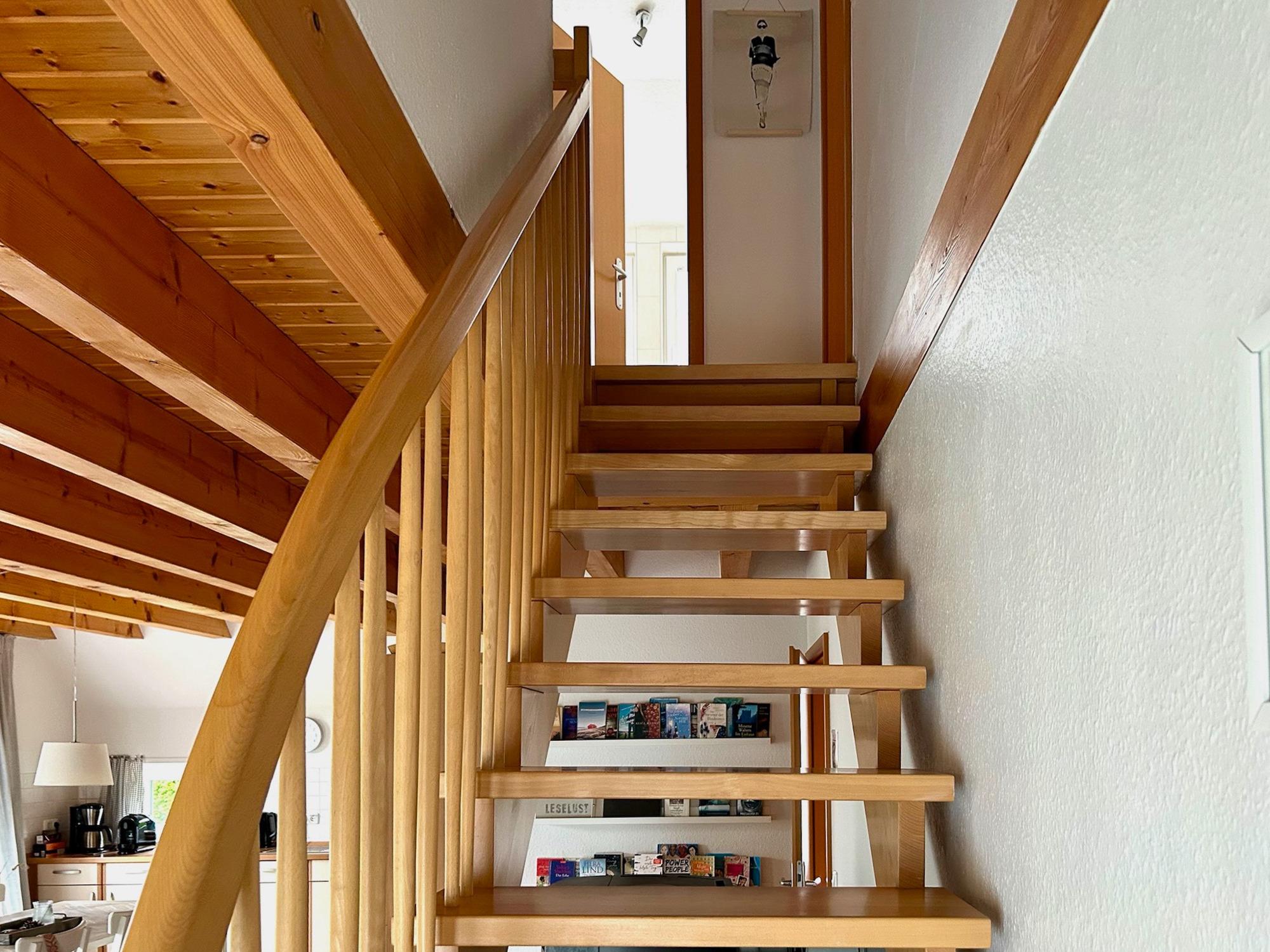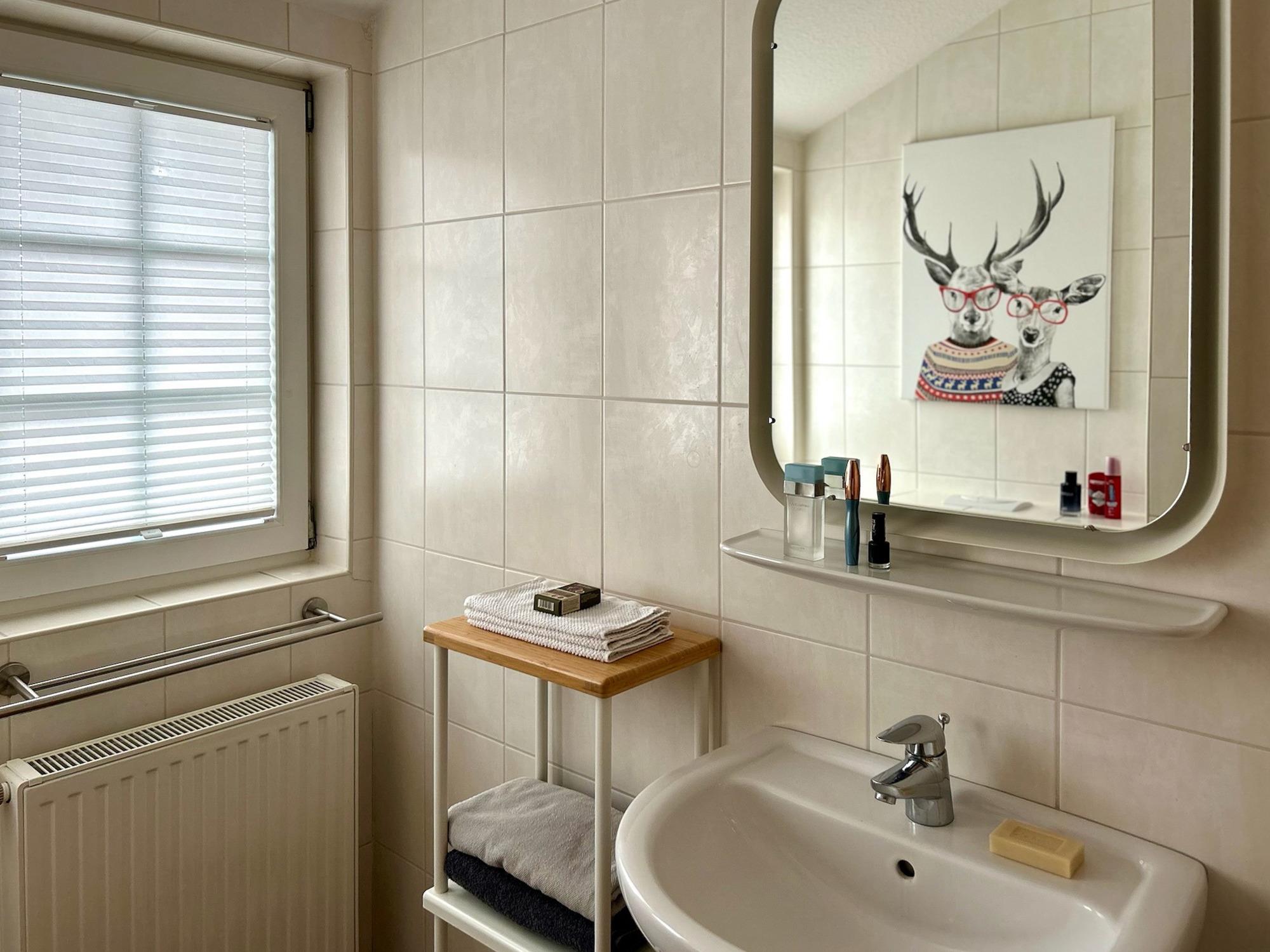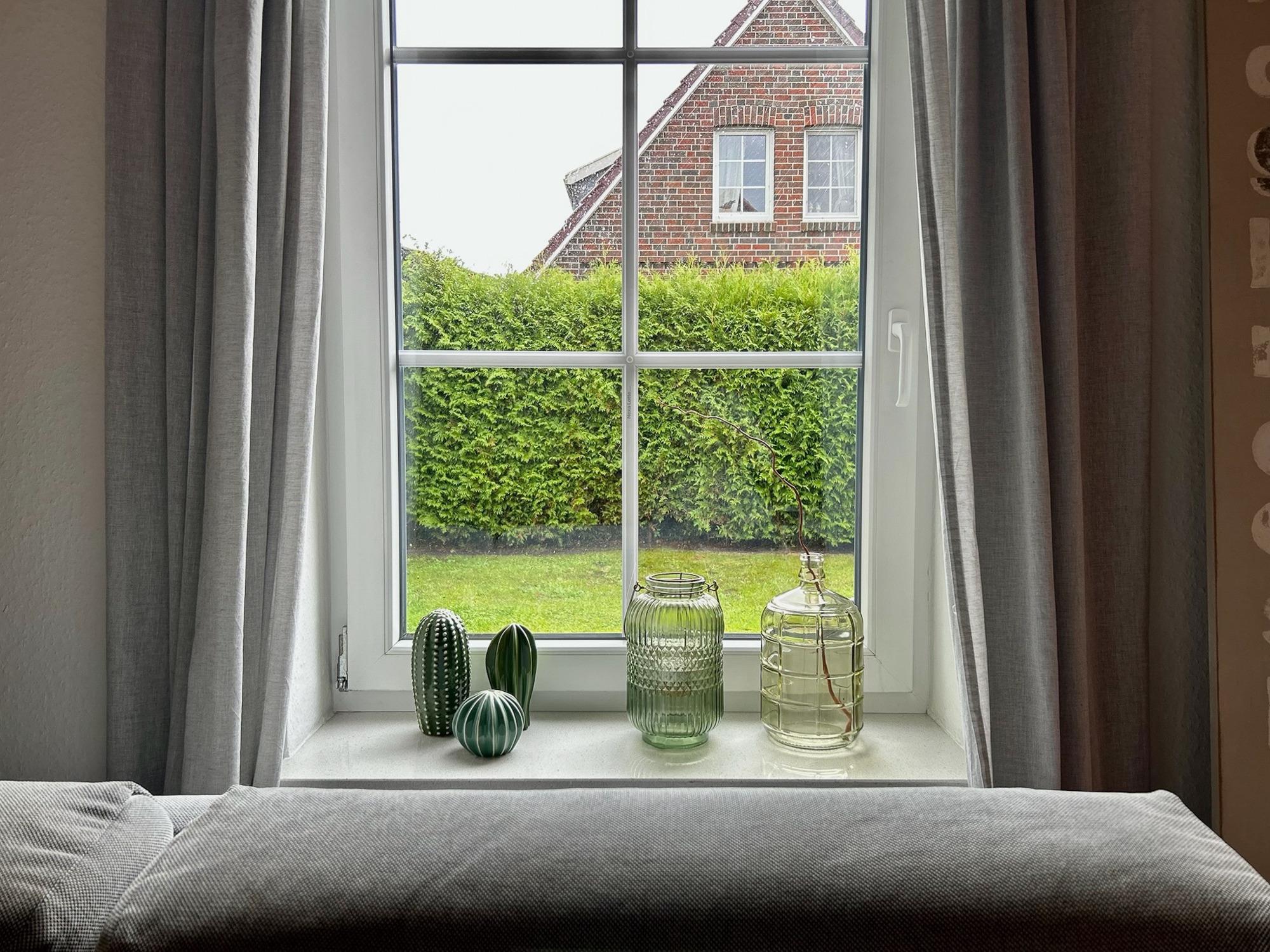 3 Schlafräume: 1 Schlafzimmer im EG mit Doppelbett (2 x 90 x 200cm), 1 Schlafzimmer im OG mit Doppelbett (90 x 200cm) und 1 Schlafzimmer mit 2 Einzelbetten (90 x 200cm) eingerichtet mit Kiefer-Naturholzmöbeln, Allergiker-Betten, alle mit verstellbarem Lattenrost. Wohnbereich mit Deichblick! Kamin, Rundsitzecke, 43"Sony FullHD LED-TV, Sat-Receiver, CD-Radio, ein DSL WLAN-Gastzugang ist vorhanden, Essbereich für 6 Personen mit großem Tisch und Einbauküche mit Herd und Cerankochfeld, Dunstabzugshaube, Kühlschrank mit Gefrierfach, 45er Geschirrspüler, Filterkaffeemaschine, 2 Badezimmer, jeweils mit Dusche und WC sowie zusätzlicher Fußboden-Erwärmung. Das Bad im EG verfügt über Waschmaschine (8kg) und Trockner (7,5kg). Im Abstellraum finden sie u.a. Bügelbrett, Bügeleisen, Wäscheständer, Kinderreisebett und Kinderhochstuhl.