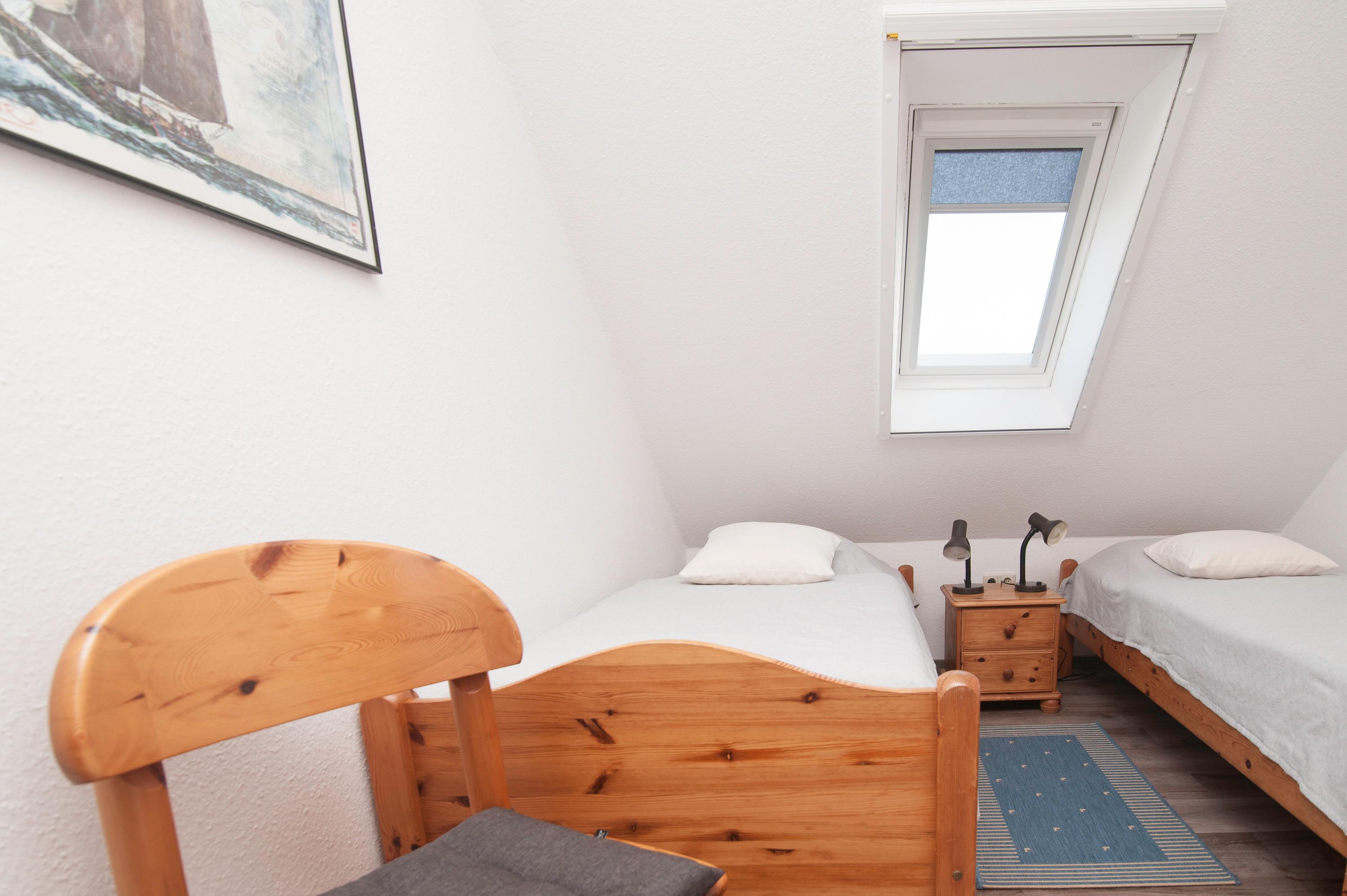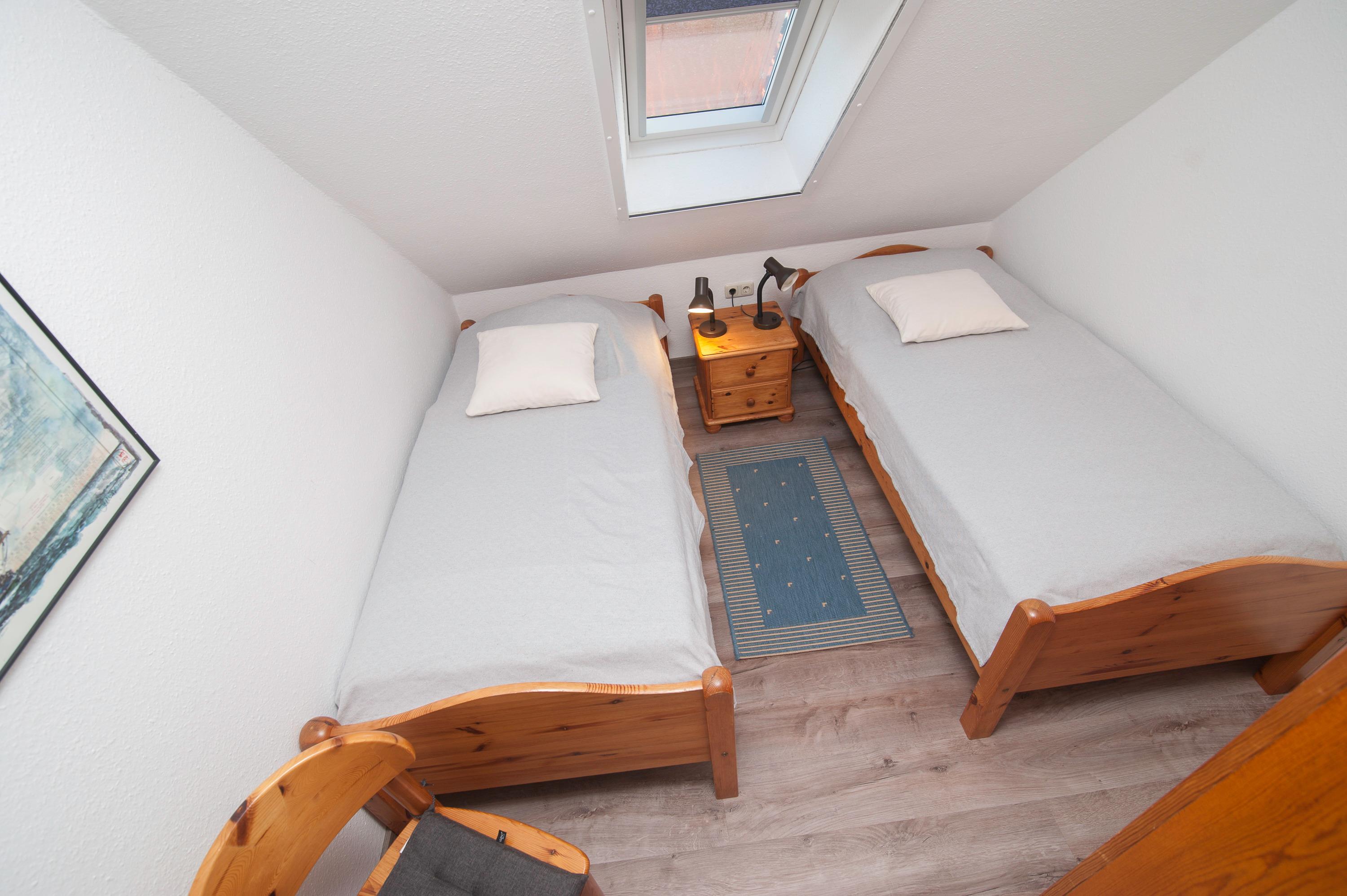 1 Schlafraum mit Einzelbetten (Matratzengröße 90 x 200cm), alle Betten im Haus haben verstellbare Lattenroste, Bodenbelag von Meister Design.
