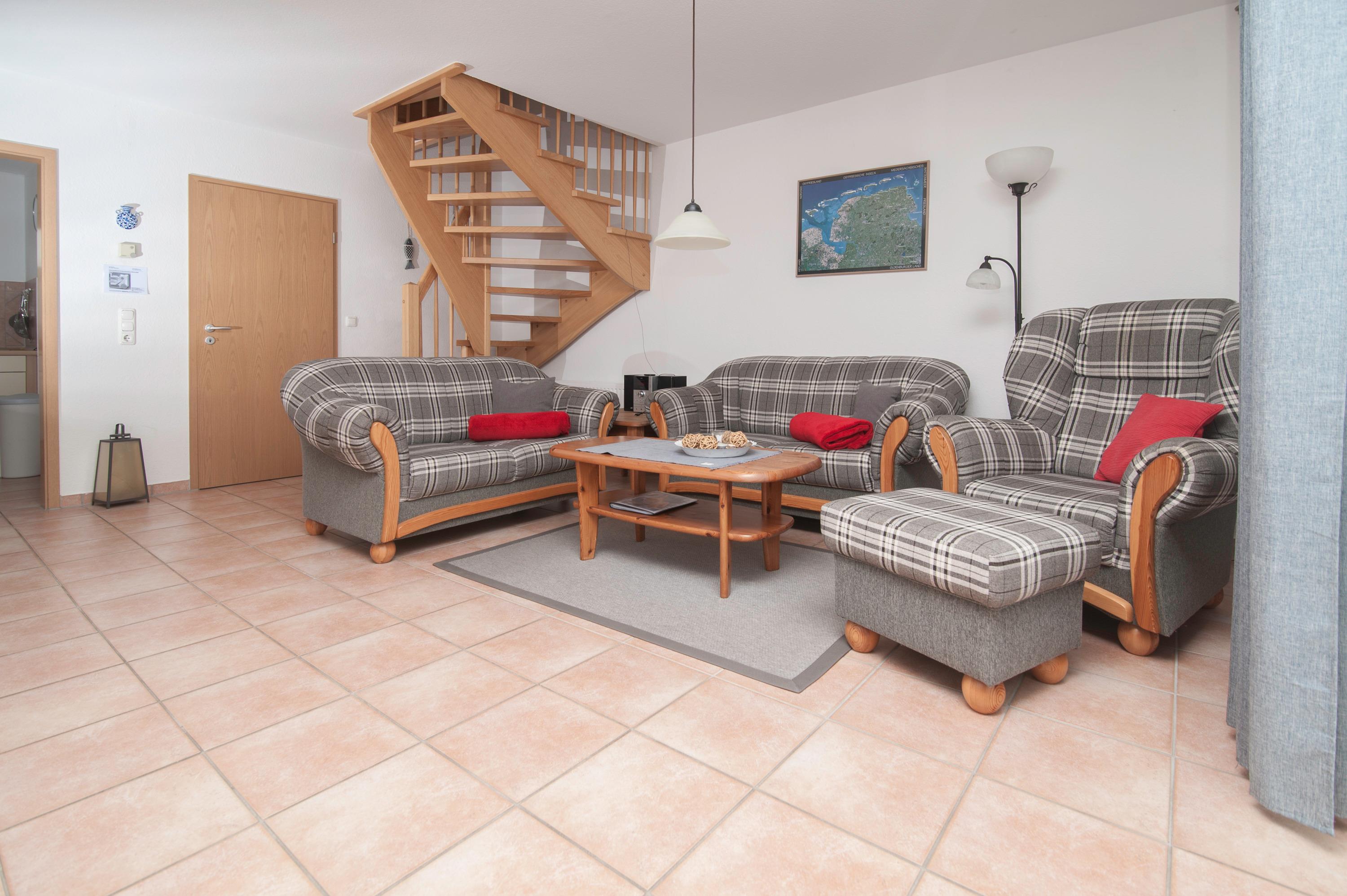 Das komplette EG ist gefliest und verfügt über Fußbodenheizung. Im OG wurde Laminat verlegt. Bettwäsche und Handtücher werden auf Wunsch gegen Entgelt gestellt.
