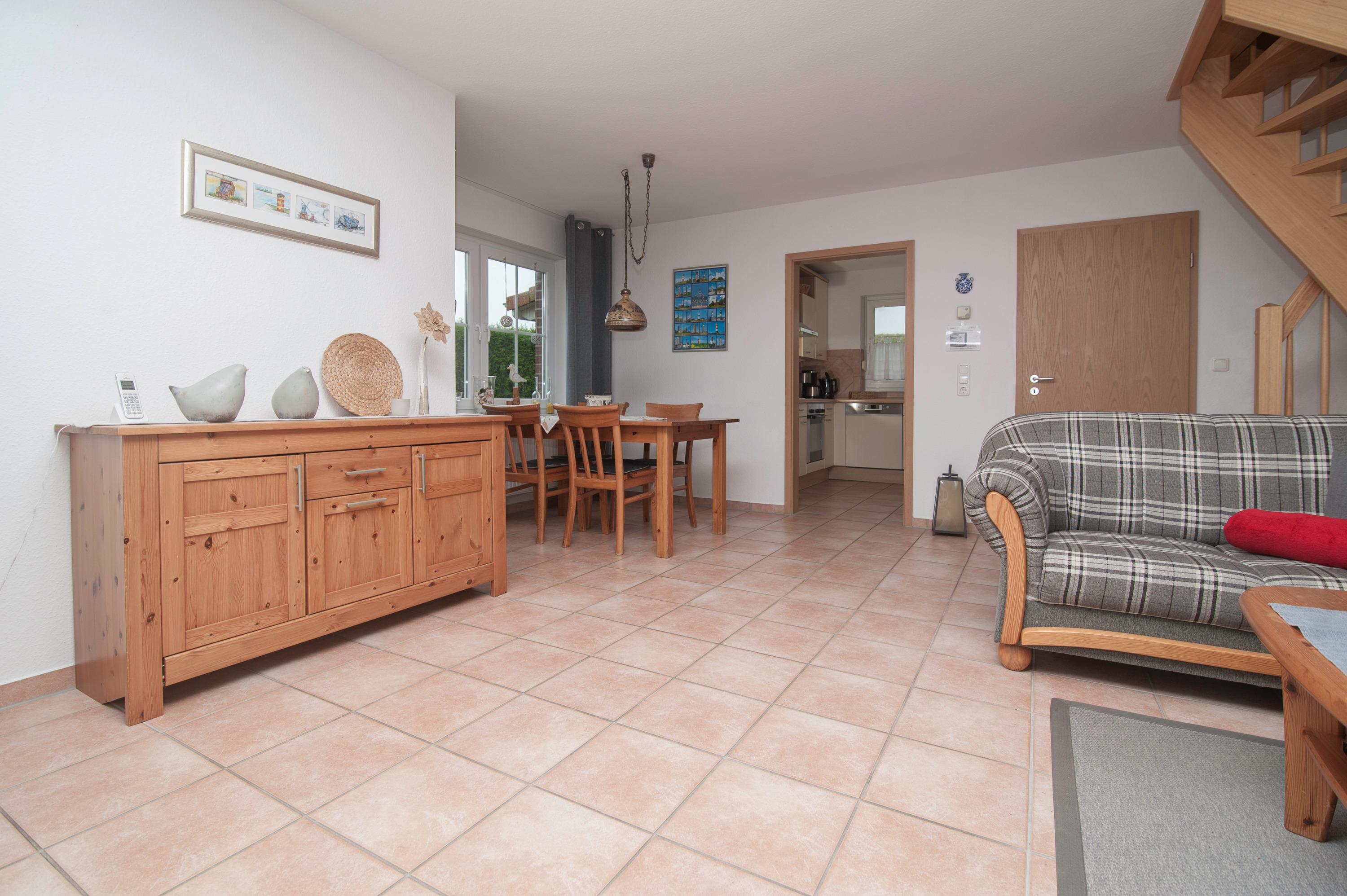 Doppelhaushälfte (75 qm) in friesischem Stil für 2 - 4 Personen, komfortabel und liebevoll eingerichtet. Vom Haus aus sind es nur ein paar Schritte und Sie sind am Deich und können einen Deichspaziergang machen, am Wasser entlang laufen oder eine Fahrradtour in Richtung Pilsumer Leuchtturm, Wattenmeer, Schleuse u.v.m machen.