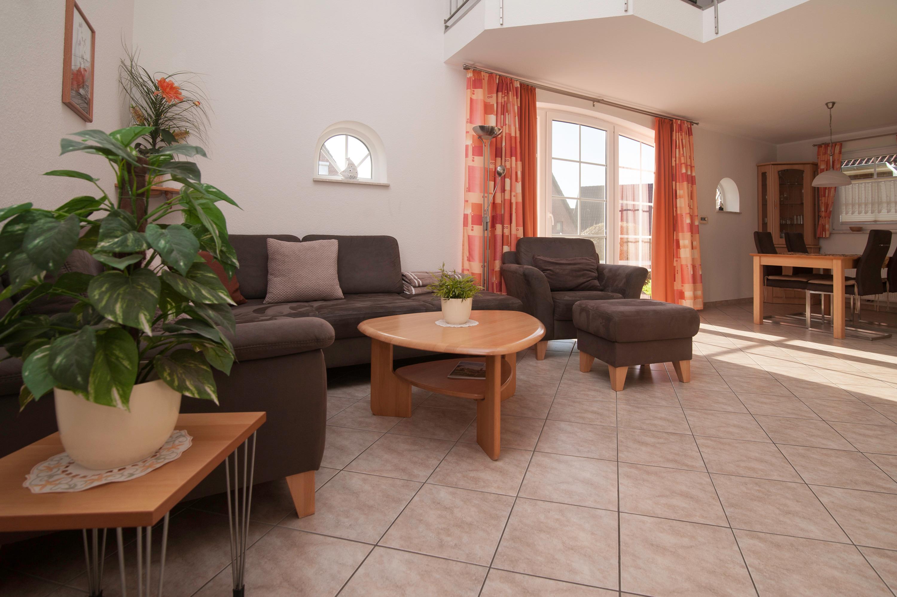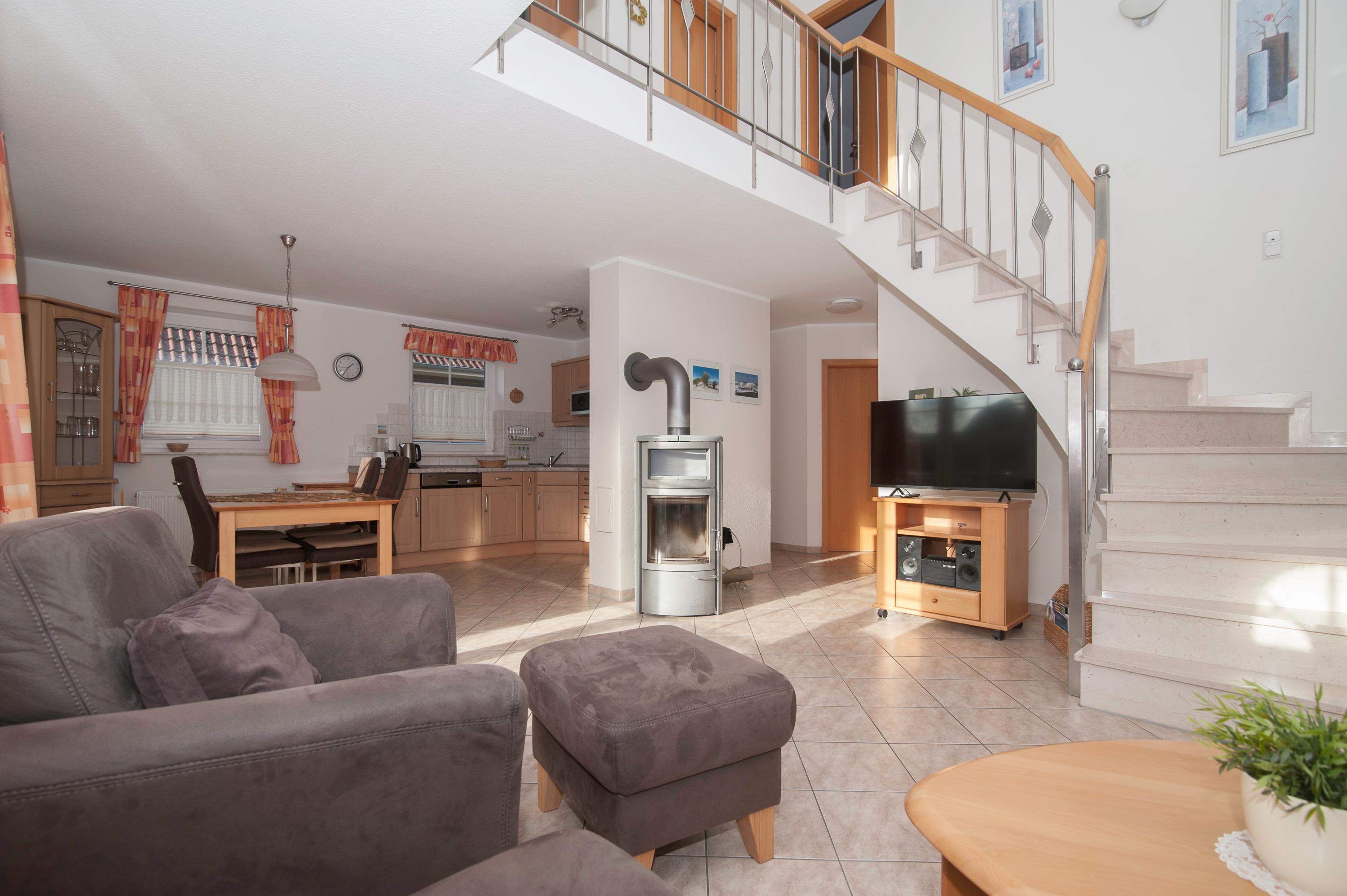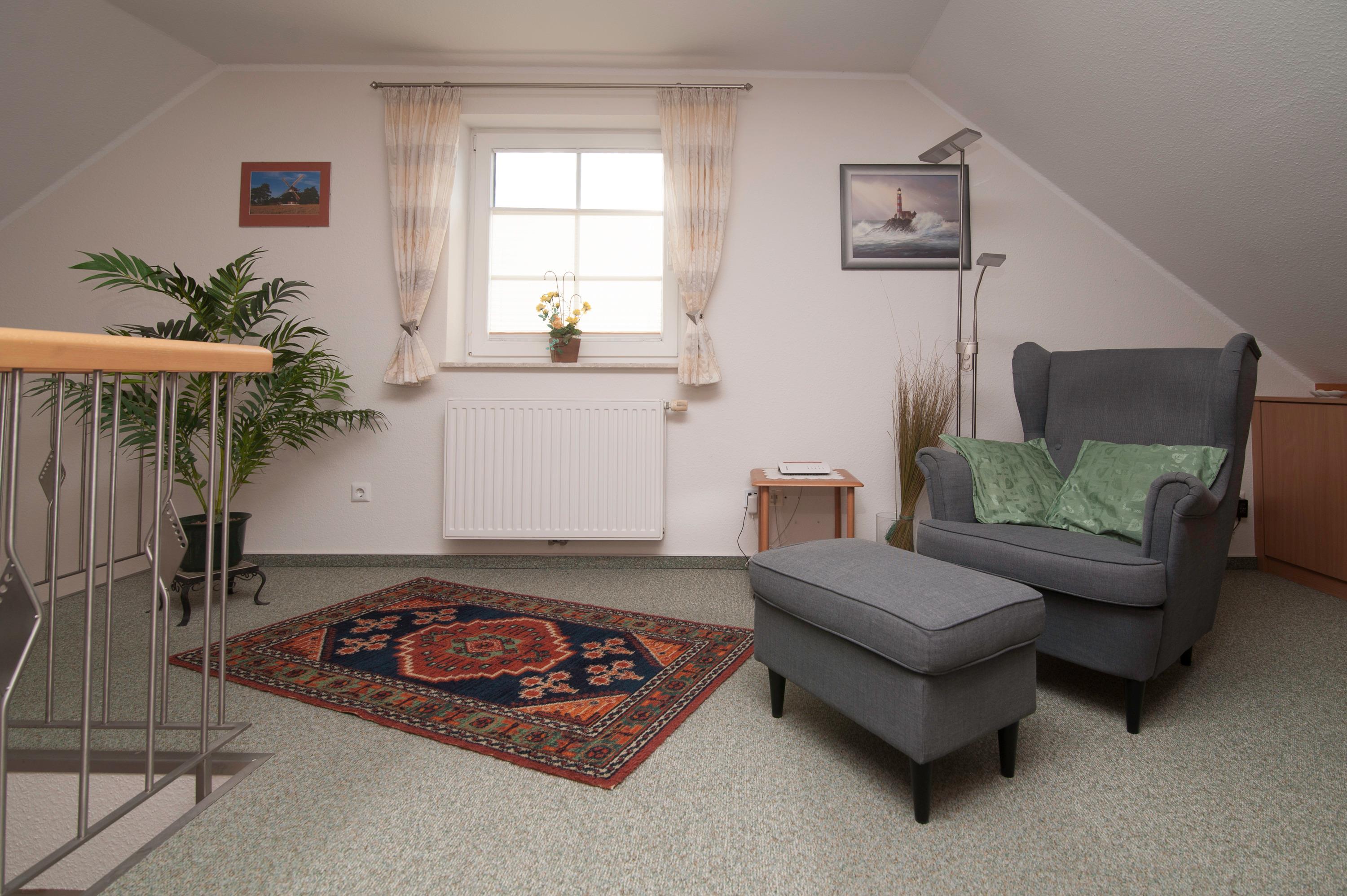 Galerieraum mit Sitzmöglichkeit. Das Haus verfügt über Fußbodenheizung im EG. Im Abstellraum finden Sie u.a. ein Bügelbrett, Bügeleisen u.v.m. Bettwäsche und Handtücher werden auf Wunsch gegen Entgelt gestellt.