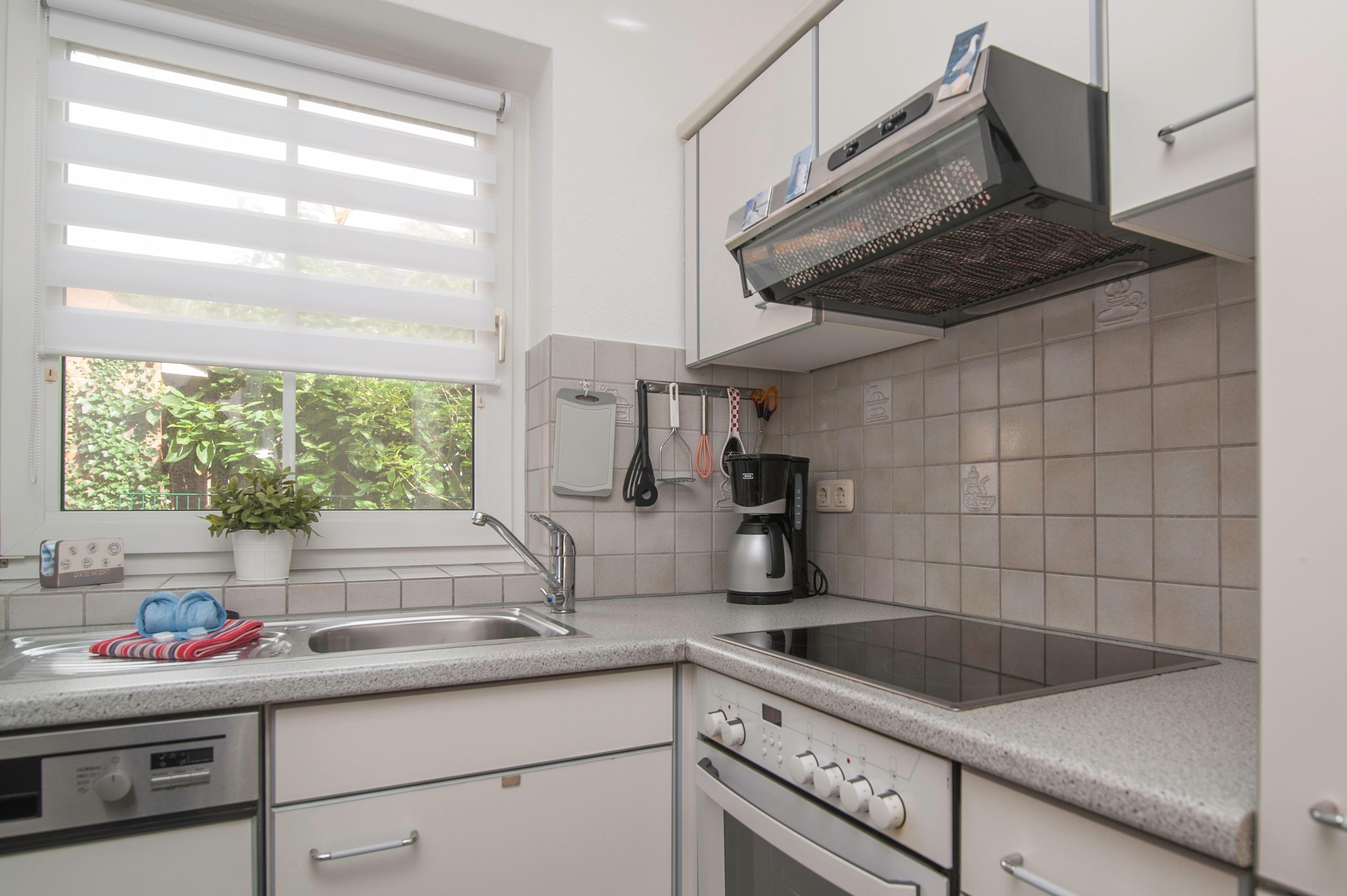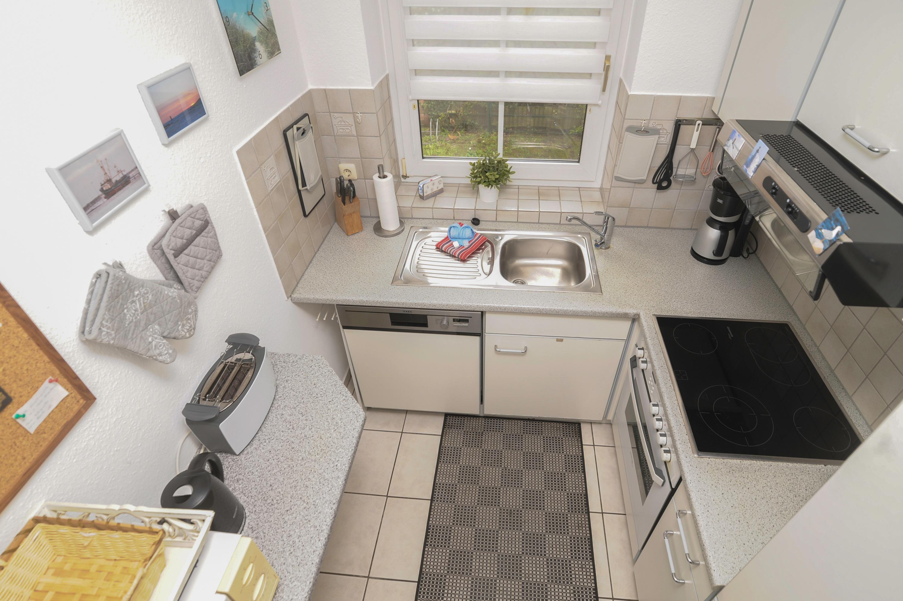 Das Erdgeschoss bietet ein Gäste WC sowie eine komplett eingerichtete Küche: Herd mit Cerankochfeld, Kühlschrank mit Gefrierfach, Geschirrspüler, Filterkaffeemaschine und Mikrowelle. Der Wohn- und Essraum mit 32"Metz FullHD LCD-TV, DVD Player und Stereoanlage.