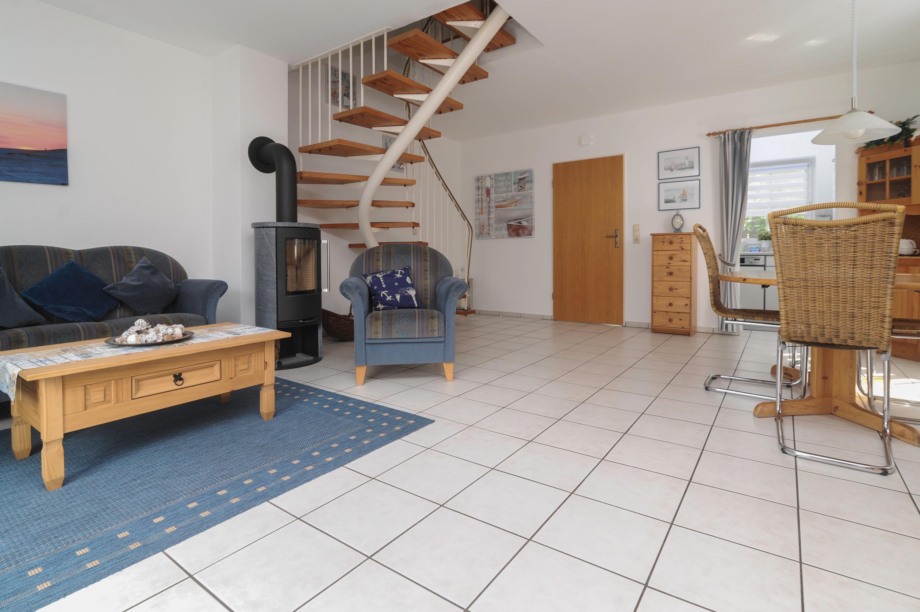 Zentralheizung und ein Kaminofen im Wohnzimmer sorgen dafür, dass Sie es auch im Winter immer schön warm haben.