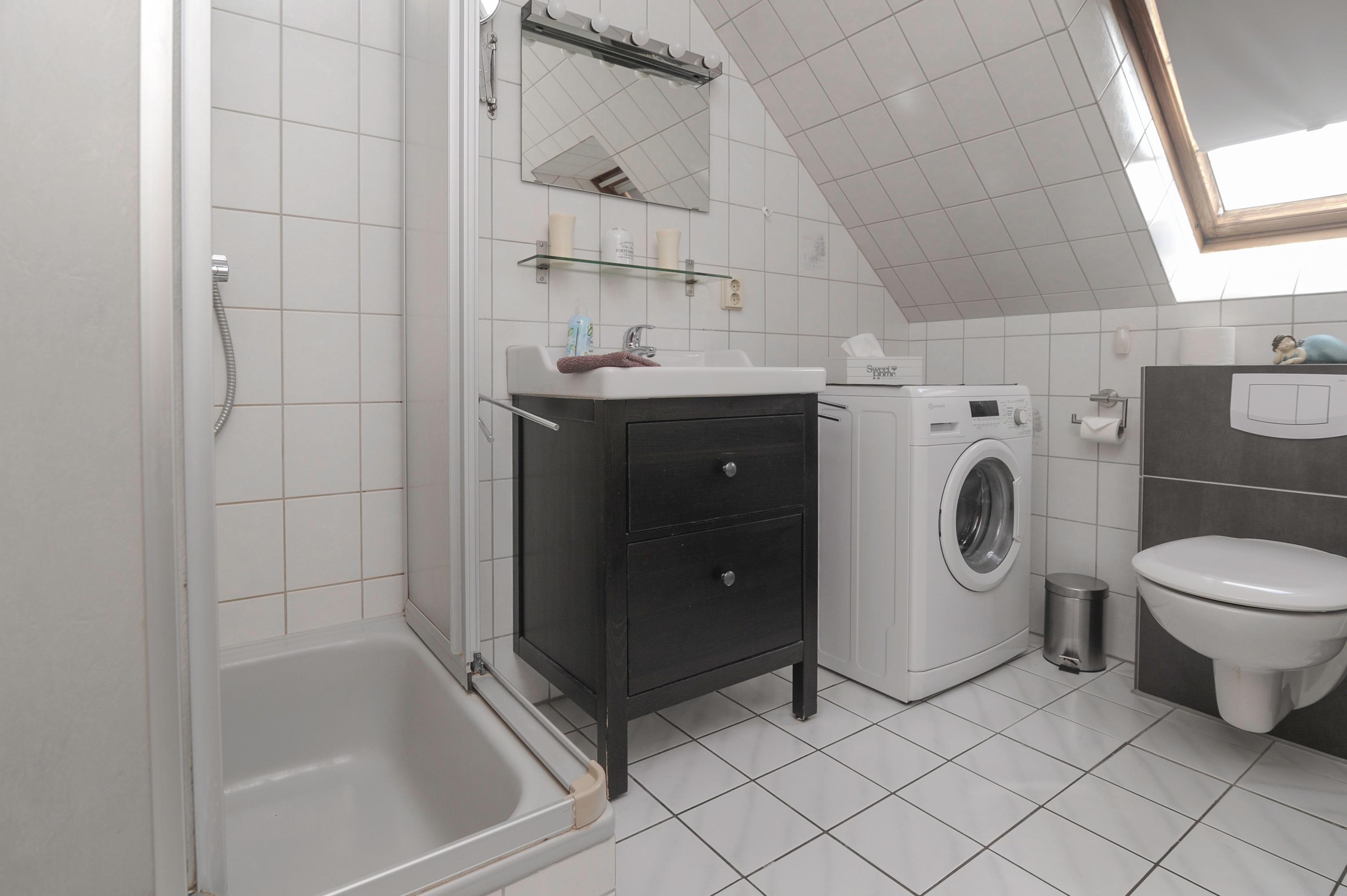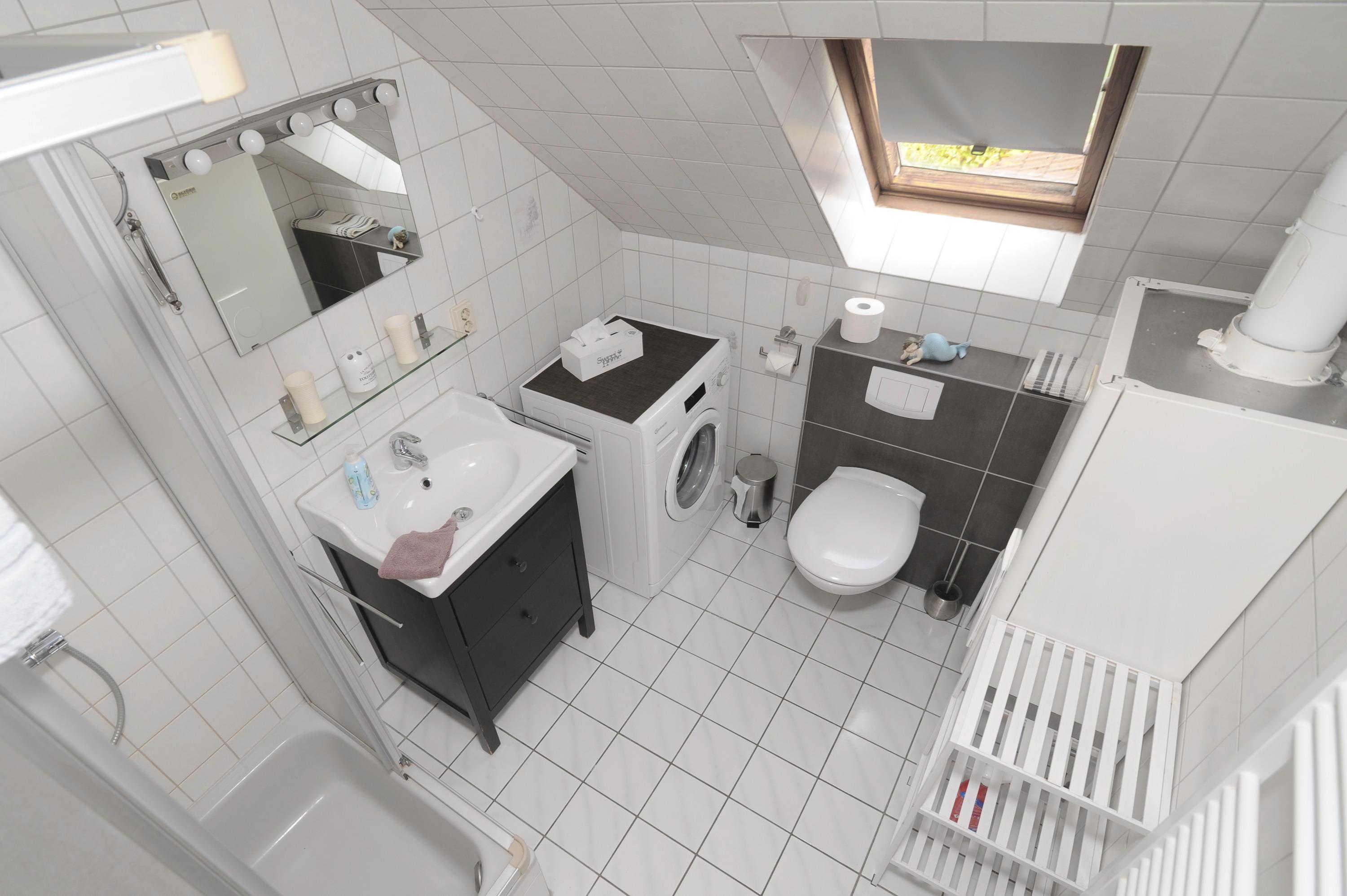 Ebenso stehen eine Waschmaschine, Wäscheständer, ein Bügeleisen und ein Bügelbrett für ihre persönliche Wäsche zur Verfügung. 1 Föhn ist vorhanden
