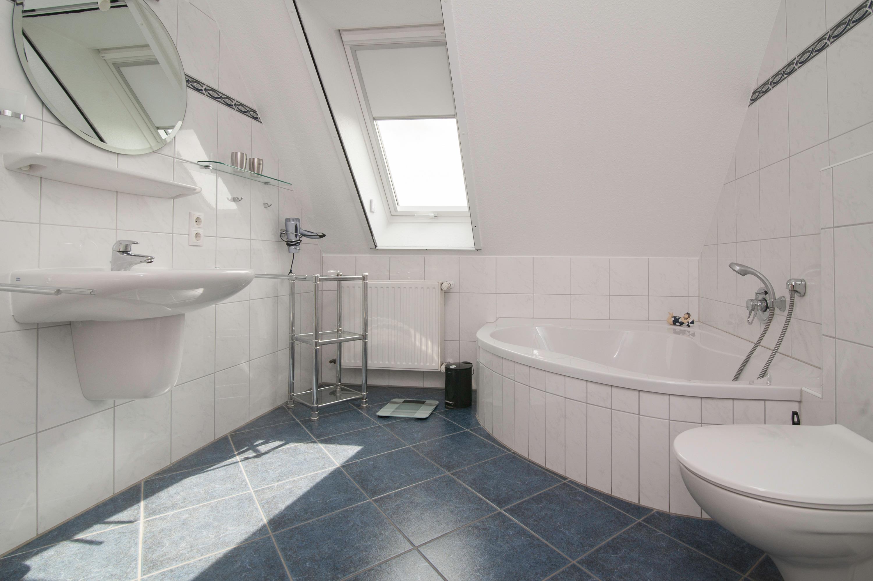 DSL WLAN-Gastzugang. Das Tageslicht Bad hat eine separate Fußbodenheizung, eine Eckbadewanne und eine separate Dusche, WC und Föhn. Die Waschmaschine (5kg), Wäscheständer, Bügelbrett, Bügeleisen uvm. befindet sich in einem Wandschrank. Hochstuhl vorhanden. Außenrollos und Insektenschutzgitter vorhanden.