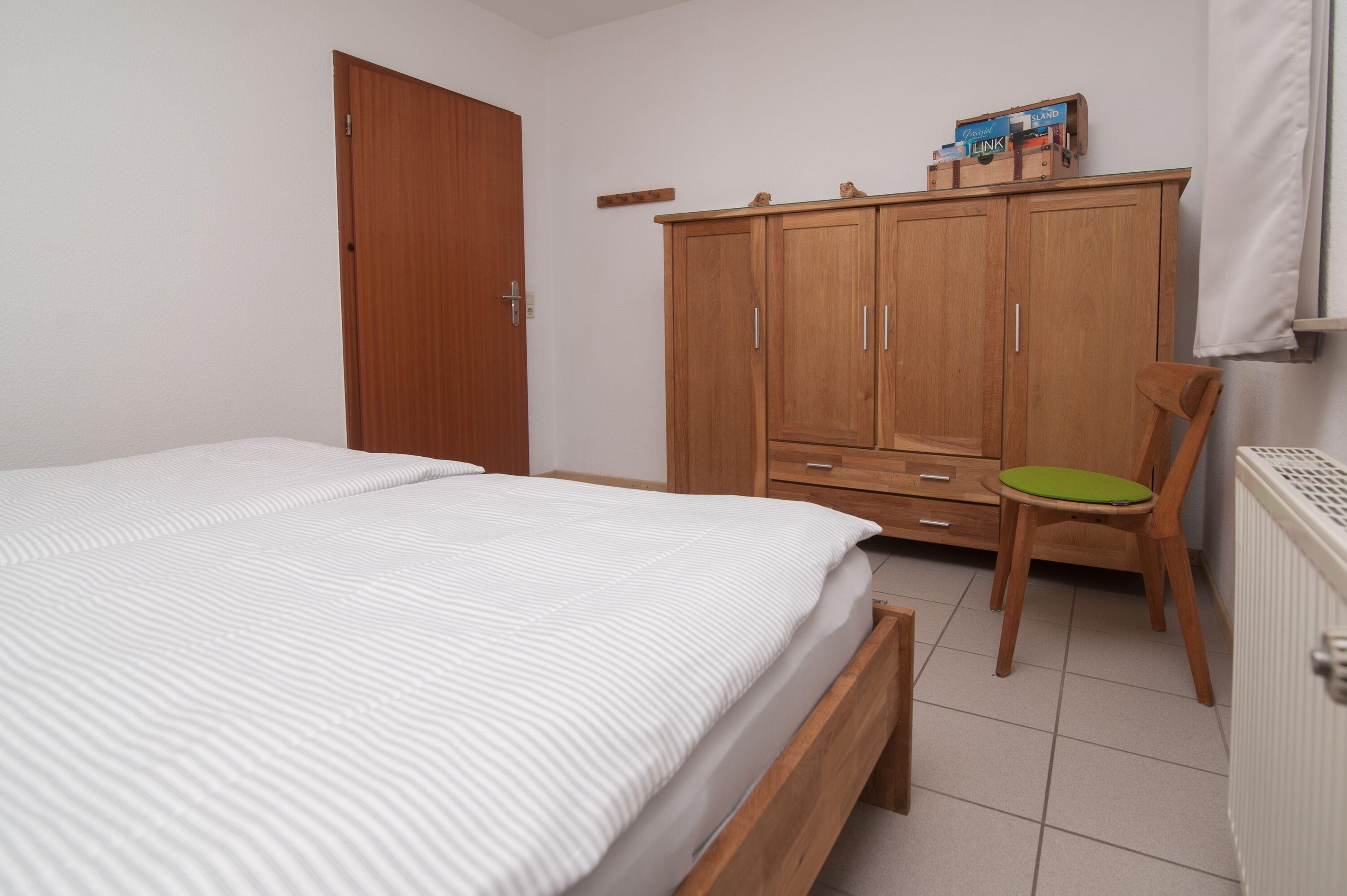 2 Schlafräume: Ein Schlafzimmer mit Doppelbett (2 x 90 x 200cm), zweites Schlafzimmer mit 2 Einzelbetten (90 x 200cm) und Schreibtisch.
