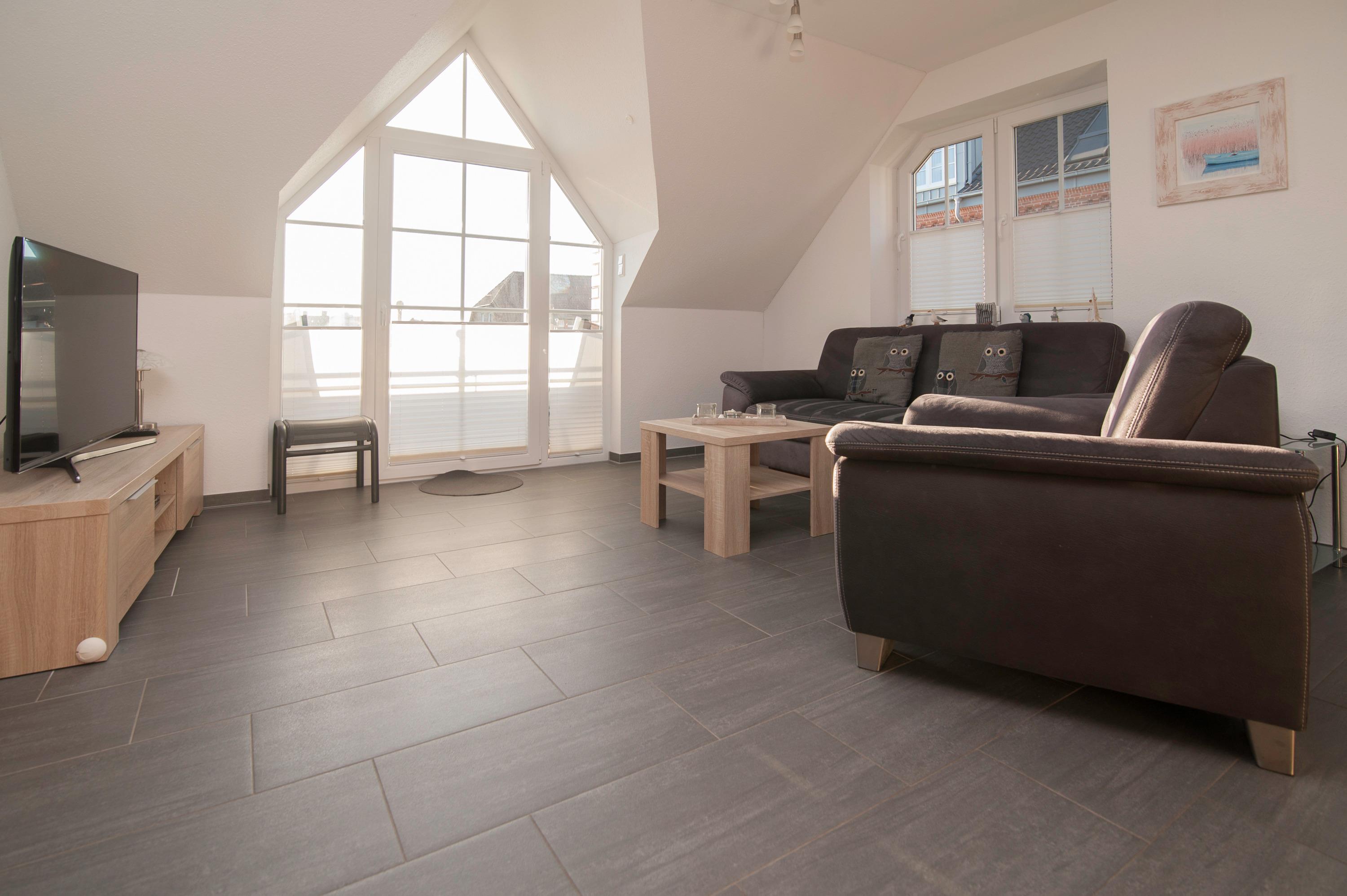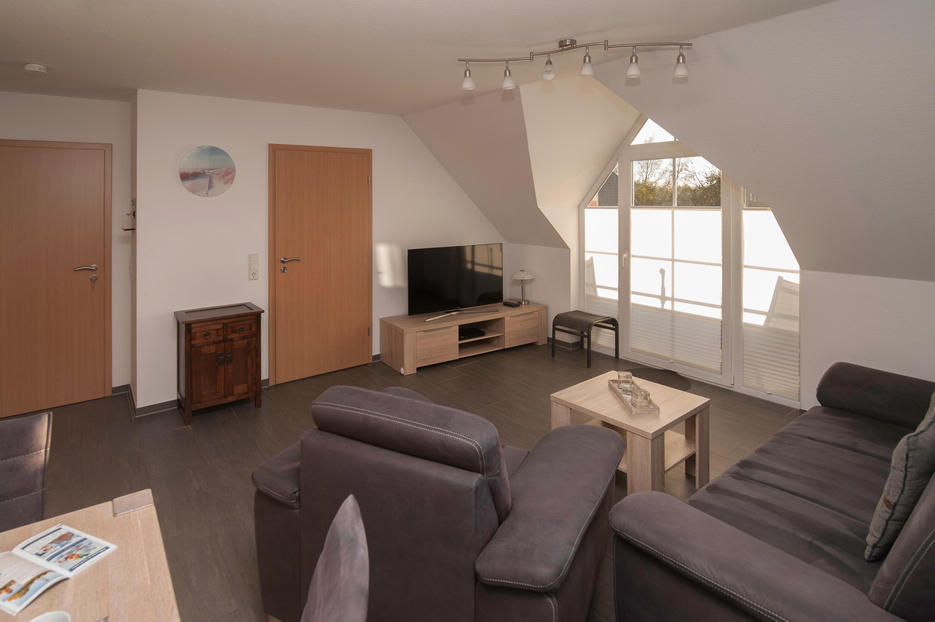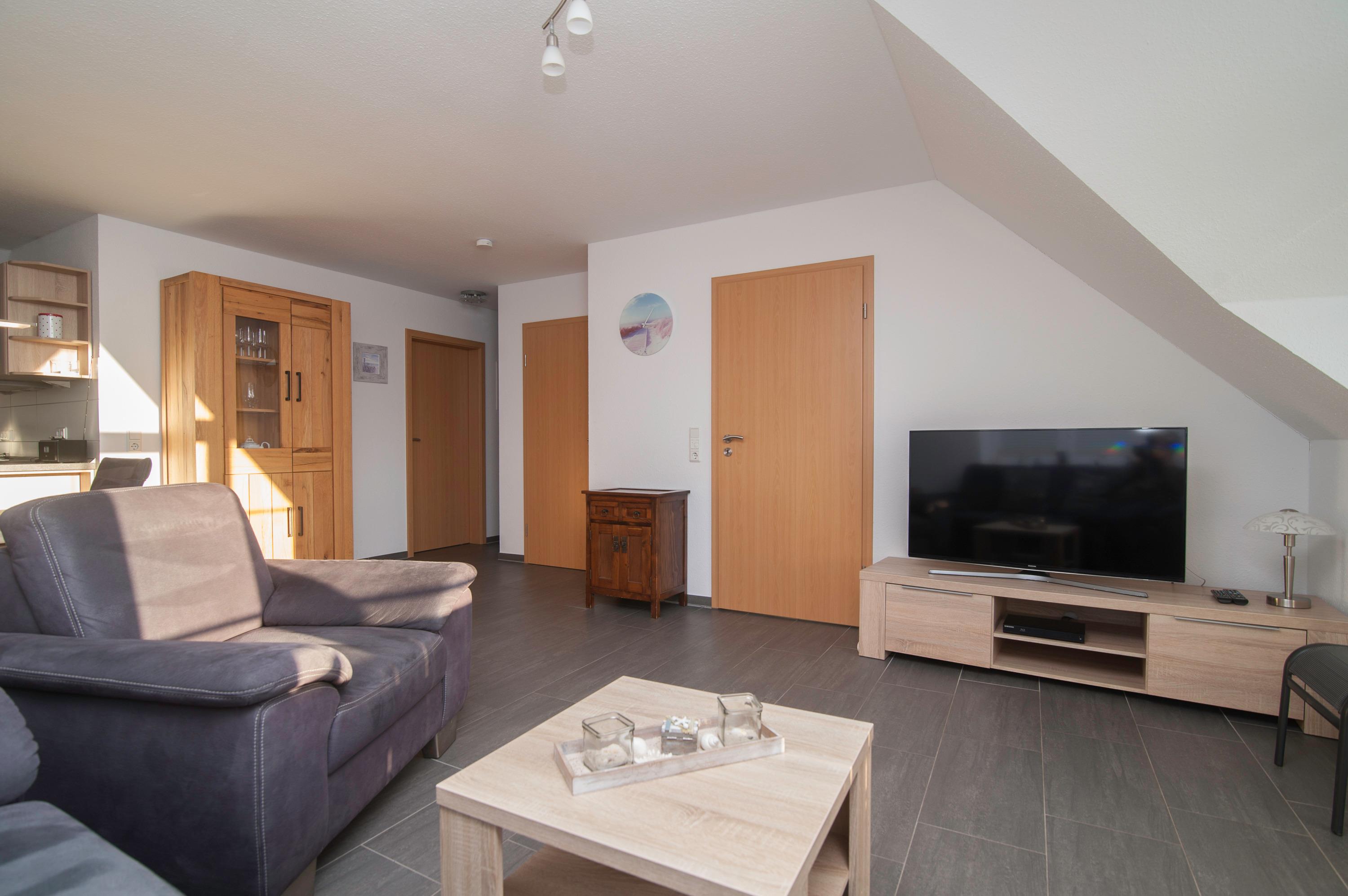 Die Wohnung befindet sich im Obergeschoss und erstreckt sich über 2 Ebenen auf 70 qm und bietet Platz für 2-4 Personen. Sie ist modern und komfortabel eingerichtet und lädt zum Entspannen ein. Dank ihrer bevorzugten Lage gelangen Sie in nur 5 Gehminuten in den Ortskern und können auch kleine und große Sehenswürdigkeiten bequem zu Fuß oder mit dem Fahrrad an der frischen Seeluft erreichen.