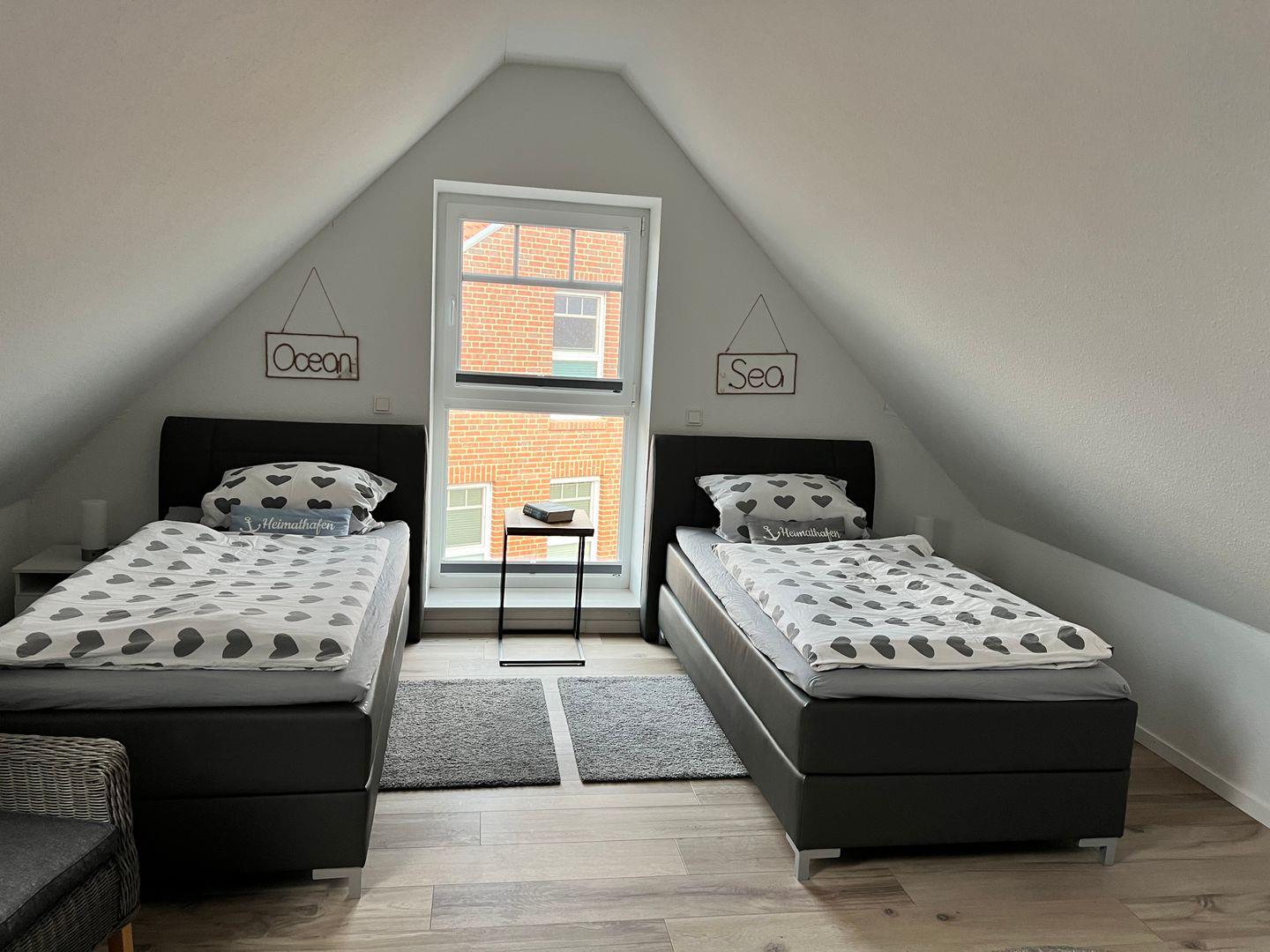 Im Dachgeschoss befindet sich das Studio mit zwei Einzelbetten, einem weiteren Flachbildfernseher und zwei zusätzlichen Sitzmöglichkeiten.