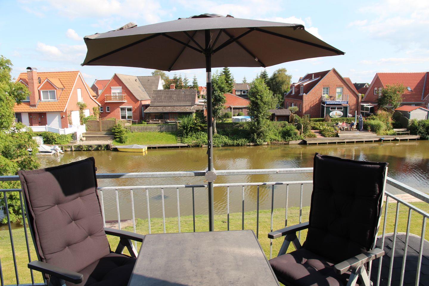 Diese hochwertig und mit viel Liebe eingerichtete Wohnung bietet einen traumhaften Blick auf das Greetsieler Sieltief. Der großzügige Wohnbereich mit L-Sofa, großem Flachbildfernseher und elektrischem Kamin lädt zu gemütlichen Stunden ein. Zwei weitere Sessel bieten einen wunderschönen Ausblick auf das Wasser, ideal um ein Buch zu lesen oder einfach nur zum Seele baumeln lassen. Von hier aus können Sie auch auf den möblierten Balkon mit Sonnenschirm raustreten.
