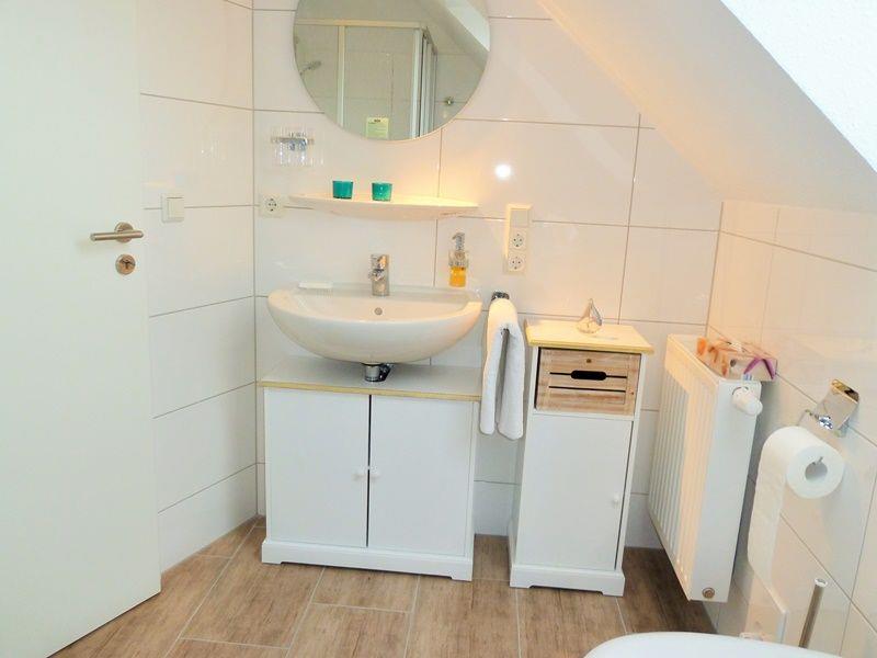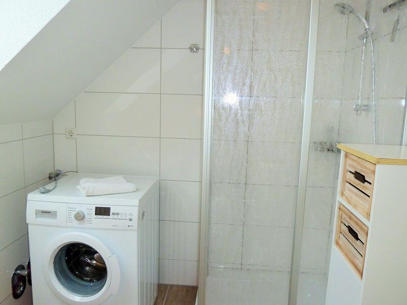 Das Tageslicht-Duschbad mit WC ist mit einer Waschmaschine ausgestattet.