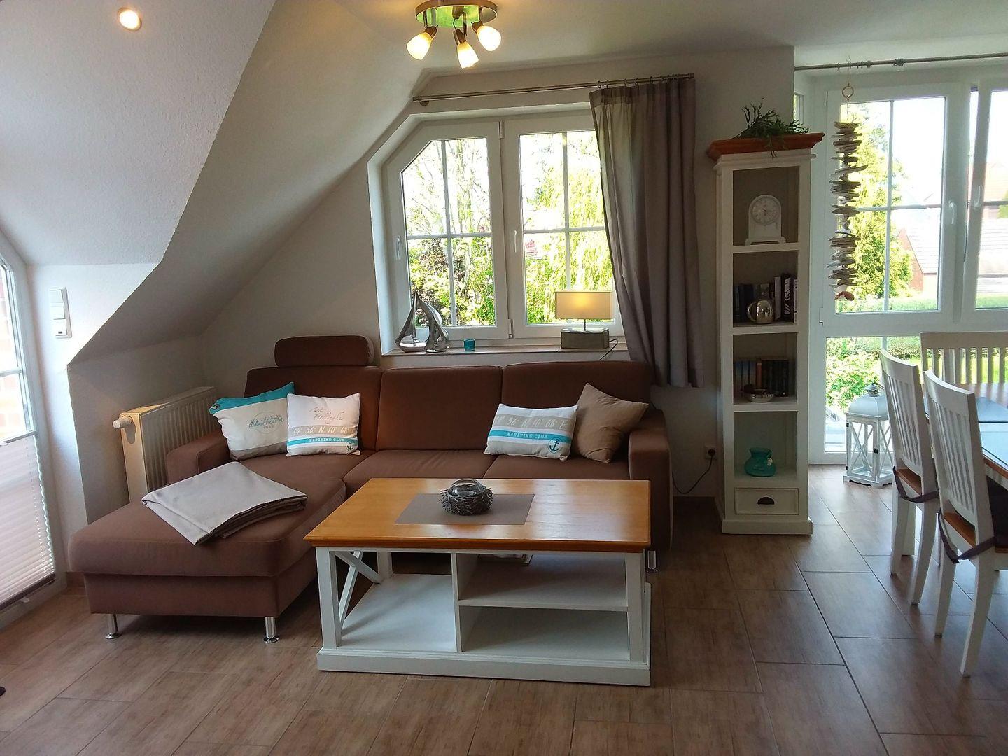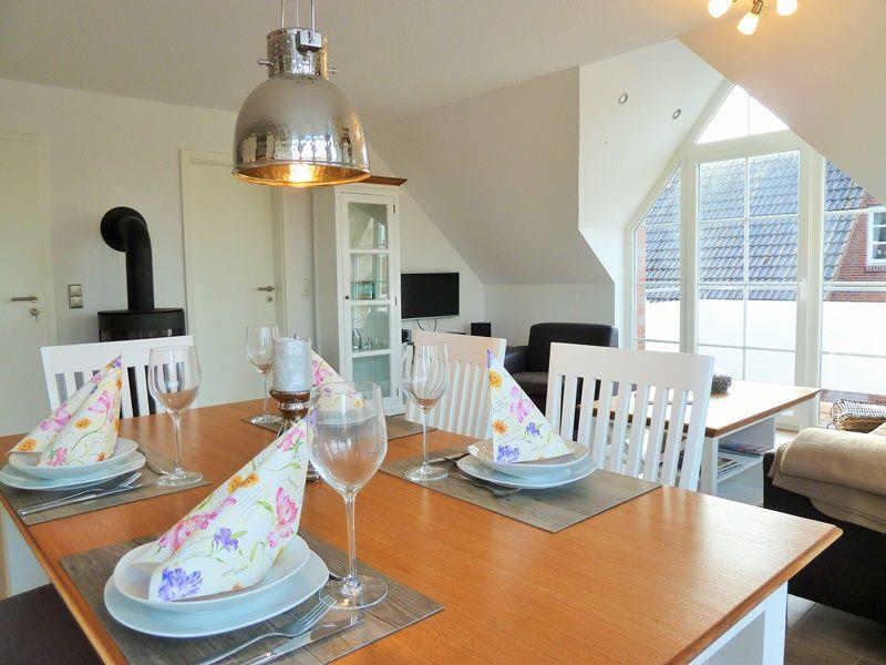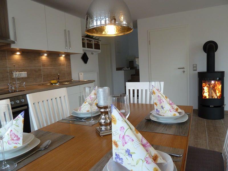 Im lichtdurchfluteten Wohn-Essbereich erwartet Sie jeglicher Komfort z. B.: Sitzgruppe, HiFi-Anlage, Flat-TV, DVD-Player und ein Kaminofen für wohlige Wärme an kalten Tagen.