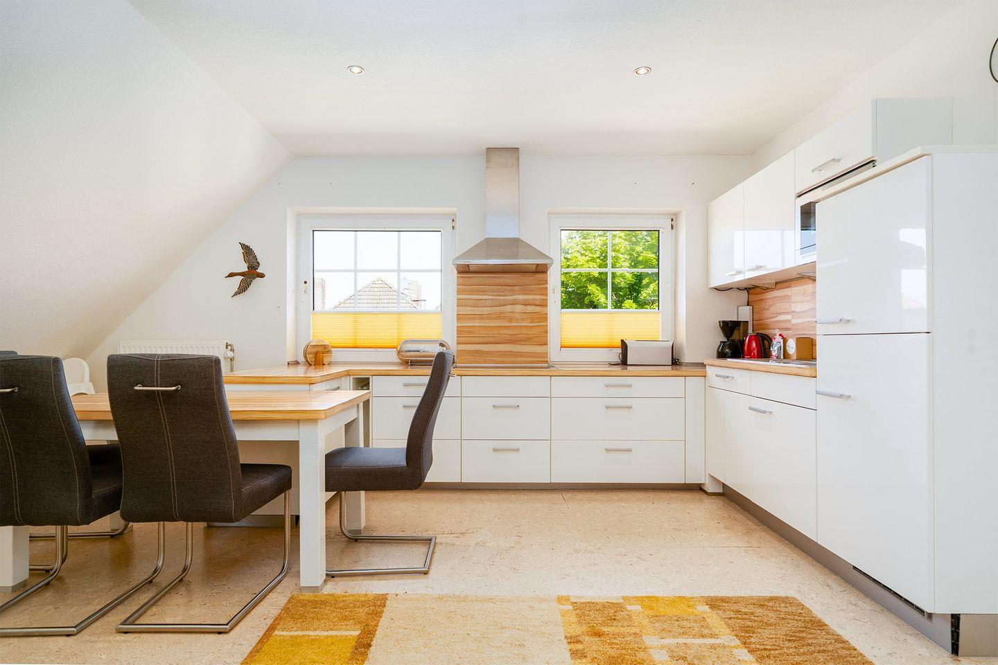 Diese hübsche Nichtraucher-Obergeschosswohnung bietet alles was Sie für einen erholsamen Urlaub brauchen. Sie liegt in ruhiger Lage nicht weit entfernt vom Zentrum und der Gesundheitsoase. Der Weg zum Bäcker und auch andere Einkaufsmöglichkeiten sind in wenigen Gehminuten erreichbar.