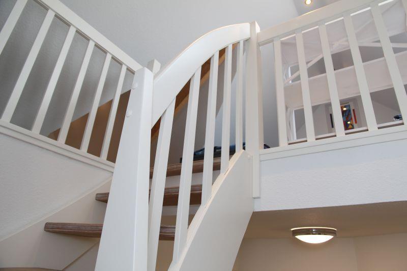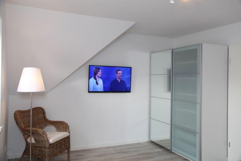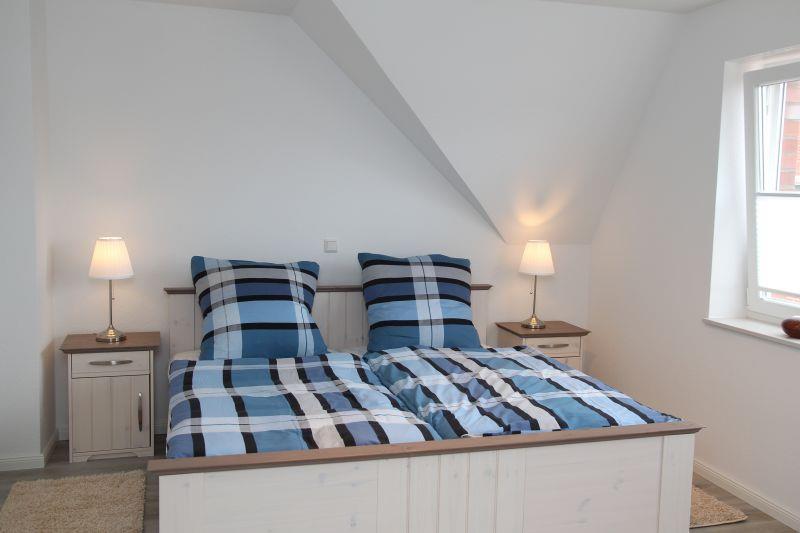 Das Ferienhaus (Nichtraucher) verfügt über 3 Schlafzimmer (Schlafzimmer 1 mit Doppelbett + Schlafzimmer 2 mit 2 Einzelbetten, die sich auf der ersten Etage befinden und das 3. Schlafzimmer befindet sich in der ausgebauten Galerie unterm Dach mit weiteren 2 Einzelbetten). In den Schlafzimmern 1 und 2 gibt es jeweils einen weiteren Fernseher. Die Veluxfenster in den beiden Schlafräumen 2 und 3 verfügen über Verdunkelungsrollos. Das Schlafzimmer 1 mit Doppelbett verfügt über Außenjalousien.