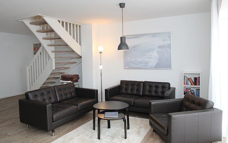Der Fußboden ist mit Laminat ausgelegt und verfügt über eine Fußbodenheizung im gesamten Haus (außer das Dachstudio, dort befindet sich ein Heizkörper). Das große lichtdurchflutete Wohn-Esszimmer ist geschmackvoll eingerichtet. Die Küche verfügt über eine Geschirrspülmaschine, Kaffeemaschine, Wasserkocher, Toaster, Mixer, Backofen, Ceranfeld, Kühlschrank mit Gefrierfach u.v.m.
