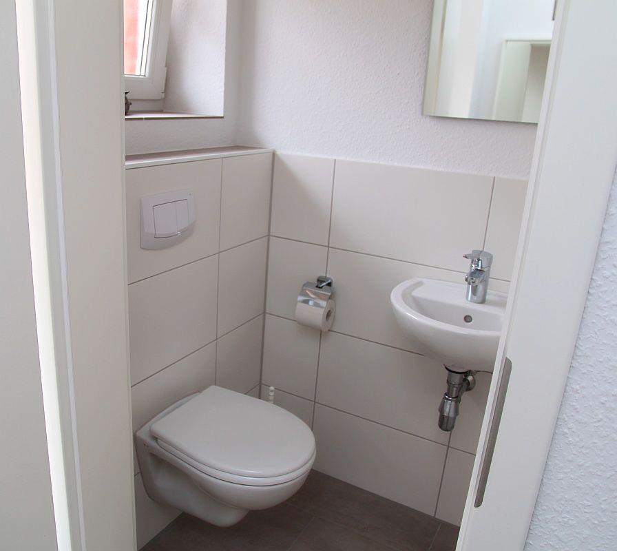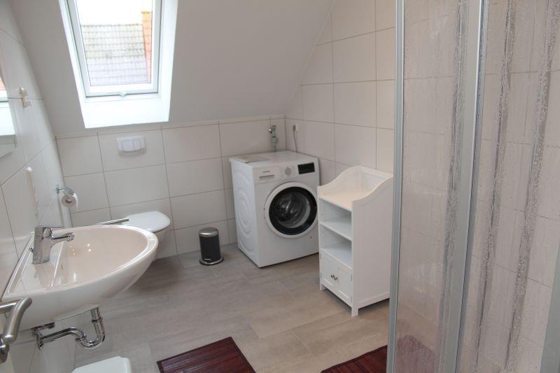 Im Erdgeschoss befindet sich ein Gäste-WC. In der ersten Etage befindet sich ein Duschbad mit WC, dort befindet sich auch eine Waschmaschine. Ein Föhn steht ebenfalls zur Verfügung.