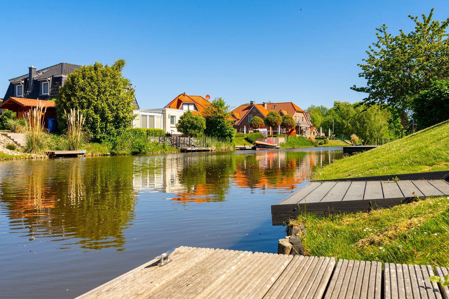 Frieso am Siel - im Achterum mit Wasserzugang. Ankommen und sich wohlfühlen in der exklusiv ausgestatteten Obergeschosswohnung Frieso mit Blick auf das Neue Greetsieler Sieltief.