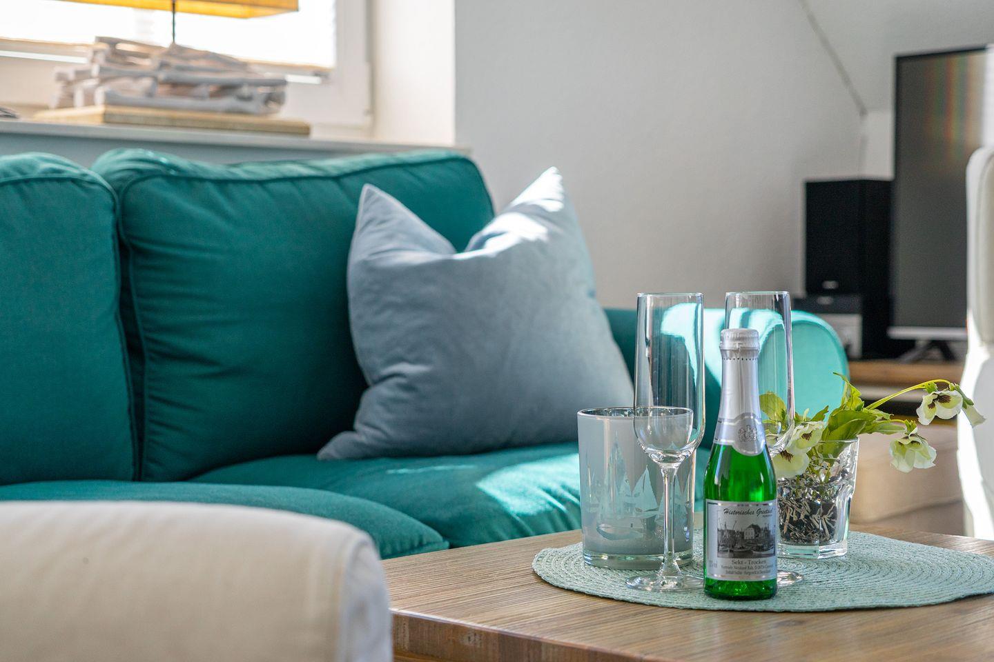 ...in der exklusiv ausgestatteten Obergeschosswohnung "Frieso am Siel" mit Blick auf das Neue Greetsieler Sieltief.