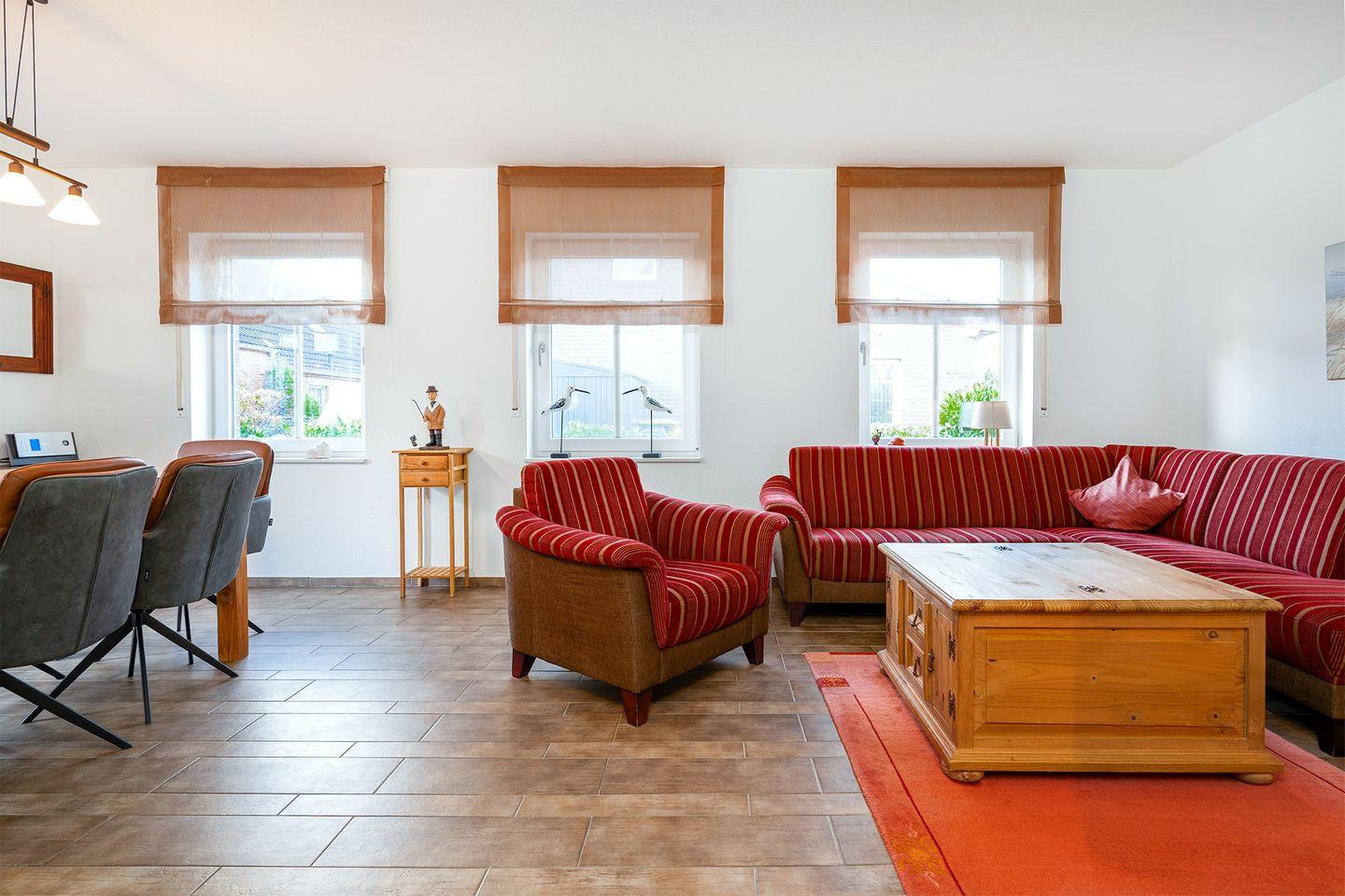 Das Ferienhaus liegt in Greetsiel, einem malerischen Küstenort an der ostfriesischen Nordseeküste. In einer ruhigen und idyllischen Umgebung gelegen, ist der historische Ortskern mit seinem romantischen Hafen, den berühmten Zwillingsmühlen, gemütlichen Cafés und Restaurants nur wenige Gehminuten entfernt. Die Deichlandschaft rund um Greetsiel bietet zahlreiche Rad- und Wanderwege mit herrlichem Blick auf das Wattenmeer. Dank der Nähe zur Nordsee und den ostfriesischen Inseln ist das Ferienhaus der ideale Ausgangspunkt für Erholung und abwechslungsreiche Ausflüge.