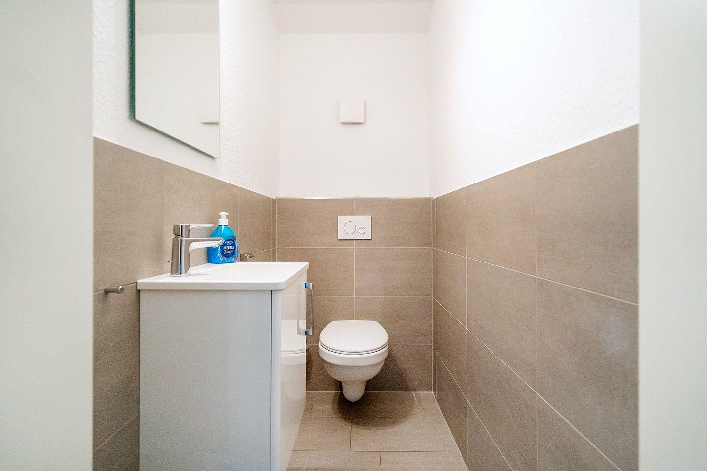 Die Wohnung verfügt über 2 Schlafräume (1xOG und 1x im Dachstudio), ein Duschbad mit Fenster und Föhn sowie ein separates WC. Das Obergeschoss ist mit hochwertigen Fliesen versehen und mit Fußbodenerwärmung ausgestattet. Im Dachstudio wurde Vinylboden in Holzdielenoptik verlegt und verleiht dem Schlafzimmer mit dem Bullaugen-Fenster ein gemütliches Kajütenfeeling.