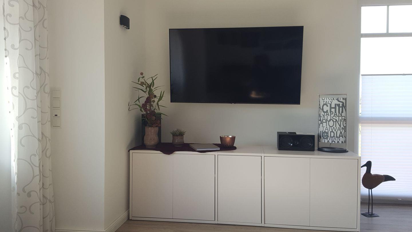 Der offen gestaltete Wohn- und Essbereich mit seinen bodentiefen Fenstern bildet den Mittelpunkt der Ferienwohnung. Ob bei gemeinsamen Mahlzeiten, unterhaltsamen Fernsehstunden (55 Zoll-Flatscreen) oder lustigen Spieleabenden, am Esstisch mit 5 Stühlen oder auf dem bequemen 3-Sitzer-Ledersofa und dem wohl geschwungenen Ledersessel mit Ottomane ist genügend Platz.