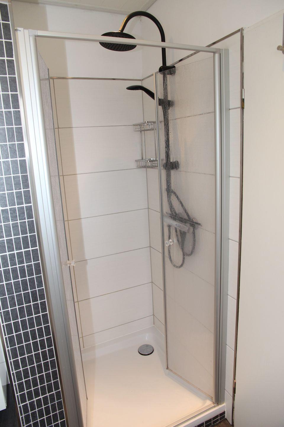 Ebenfalls im Erdgeschoss befindet sich das vollwertige Badezimmer mit ebenerdiger Dusche und ein Schlafzimmer mit einem Einzelbett.
