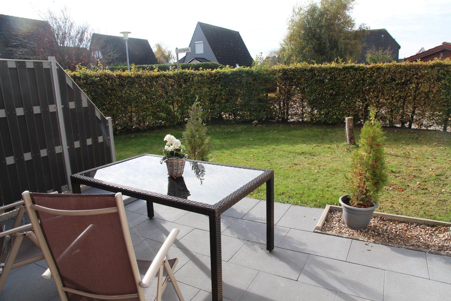 Im Garten des Hauses befindet sich ein Fahrradschuppen für Ihre mitgebrachten Fahrräder, der gesamte Garten ist mit einer dichten Hecke nicht einsehbar.