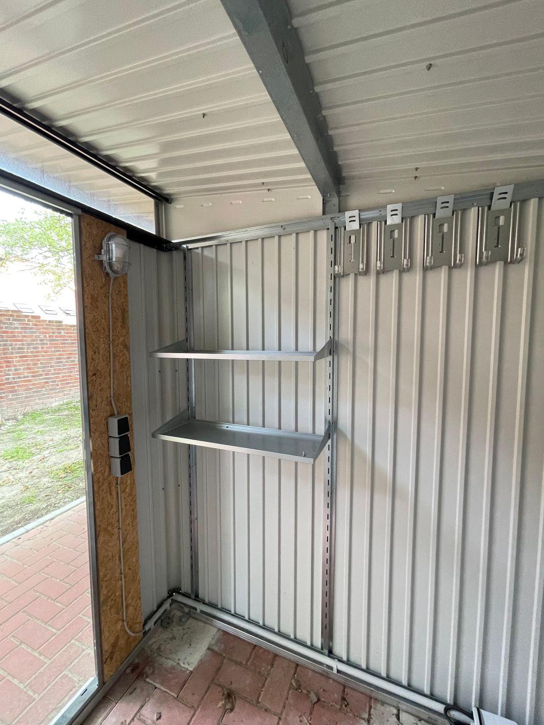 Vor dem Haus befindet sich ein abschließbares Abstellhaus mit Stromanschluss, an den Sie Ihre mitgebrachten E-Bikes aufladen können.