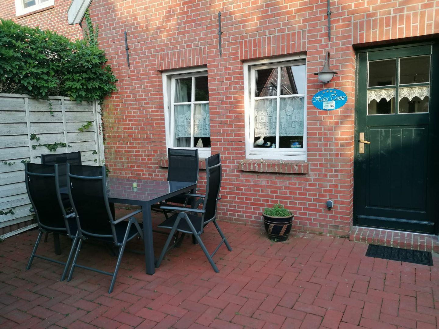 Das gemütliche Ferienhaus Tenne befindet sich im Alten Gulfhof, ruhig aber zentral gelegen. Hier findet die ganze Familie Platz und Ihr Vierbeiner ist auch herzlich willkommen. Kommen Sie herein! Das Objekt wurde Anfang 2025 komplett renoviert. Der große Wohn-Essbereich und Küche mit Balkenlage lädt zu einem Wohlfühlurlaub ein. Der gemütliche Wohnbereich verfügt über 2 bequeme Sofas und einen Sessel. Genießen Sie hier schöne Abende. Der große Flachbild-Fernseher sorgt für Unterhaltung. Am großen Esstisch hat die ganze Familie Platz. Angrenzend befindet sich die vollausgestattete neuwertige Küche. Hier können regionale Gerichte zubereitet werden. Neben dem Wohnbereich finden Sie eine kleine abgetrennte Butze, wo ein weiteres ausziehbares Bett steht, das noch einmal Platz für max. 2 Personen bietet. Im Erdgeschoss befindet sich ebenfalls ein Gäste-WC und ein Abstellraum. Im Obergeschoss liegen die 2 Schlafzimmer, eines mit einem Doppelbett und eines mit 2 Einzelbetten. Ein Kinderbettchen ist vorhanden. Das helle Duschbad liegt ebenso im OG. Hier steht auch eine Waschmaschine. Alles ist hell und freundlich eingerichtet. Die Balken im ganzen Haus vermitteln viel Gemütlichkeit. WLAN und Magenta TV sind verfügbar! Genießen Sie die frische Nordseeluft auf der möblierten Terrasse, lassen Sie die Seele baumeln. Ein Parkplatz ist vorhanden. Mitgebrachte Fahrräder können unter dem zum Gulfhof gehörenden Carport untergestellt werden.