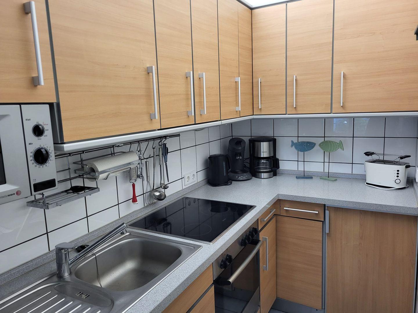 Im Obergeschoß erwartet Sie zuerst eine voll ausgestattete Küchezeile. Im Wohnzimmer mit Essecke steht das gemütliche Ecksofa zum Relaxen. HIFI und TV sind auch hier selbstverständlich. Auf dem Balkon mit Sicht in den Garten finden Sie Ruhe und Entspannung. Das Schlafzimmer ist mit einem Doppelbett ausgestattet. Das neue Duschbad vervollständigt den oberen Bereich.