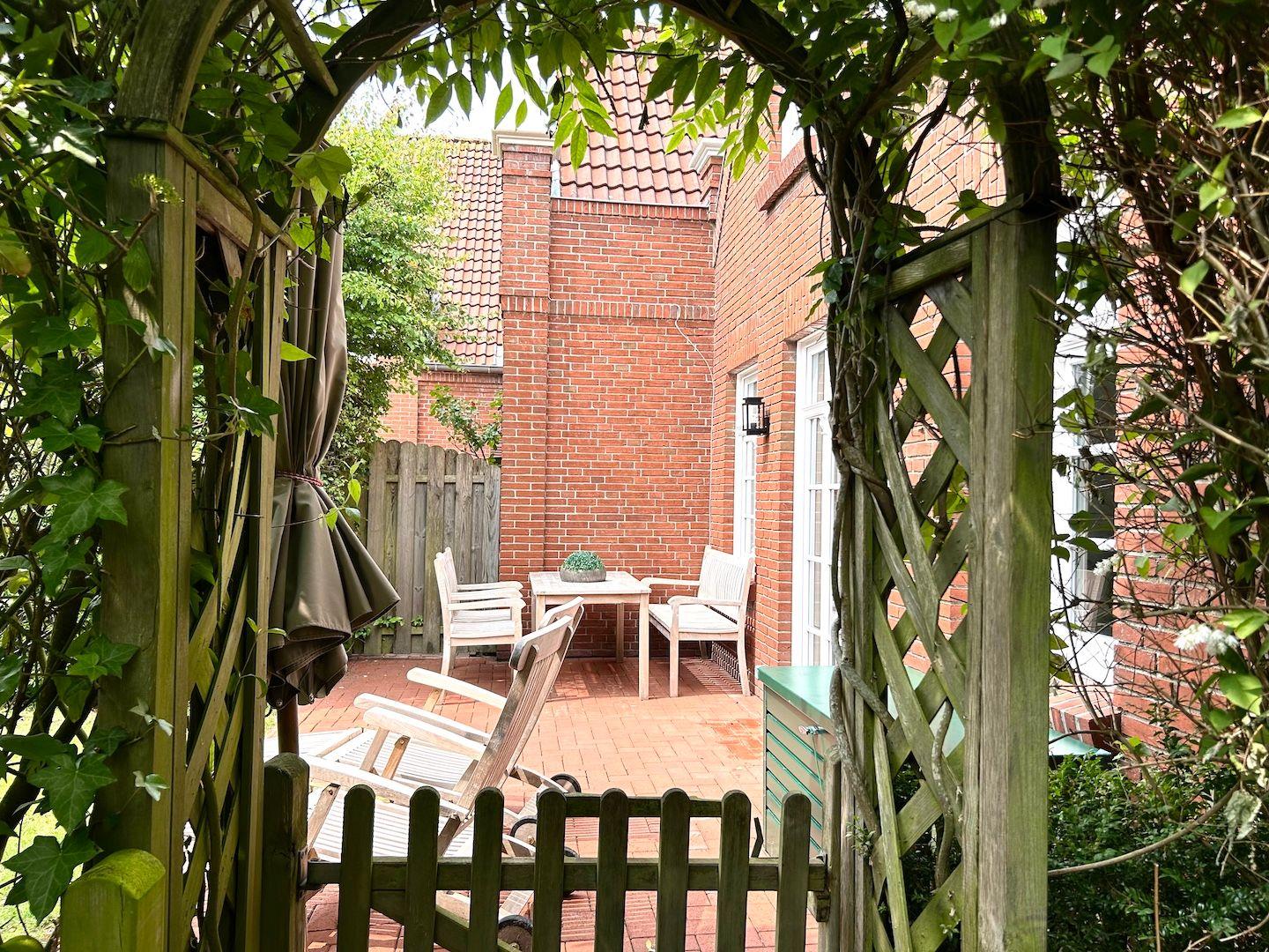 Der idyllische Garten mit seiner Sonnenterrasse ist ein ruhiger und intimer Rückzugsort, den unsere Gäste sehr genießen. Hier kann man frühstücken, auf den Sonnenliegen entspannen oder den Abend ausklingen lassen - so gelingt der perfekte Urlaub.