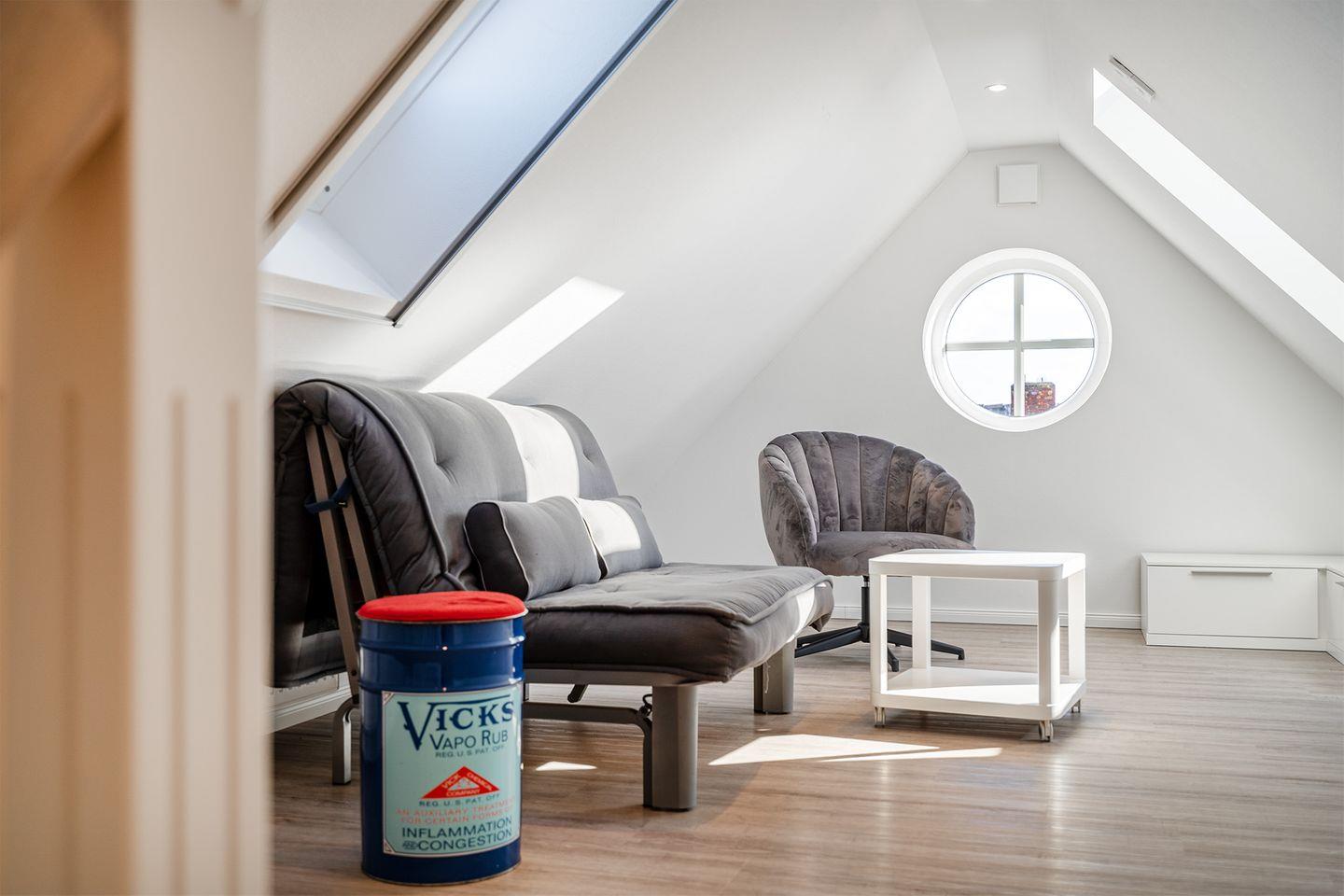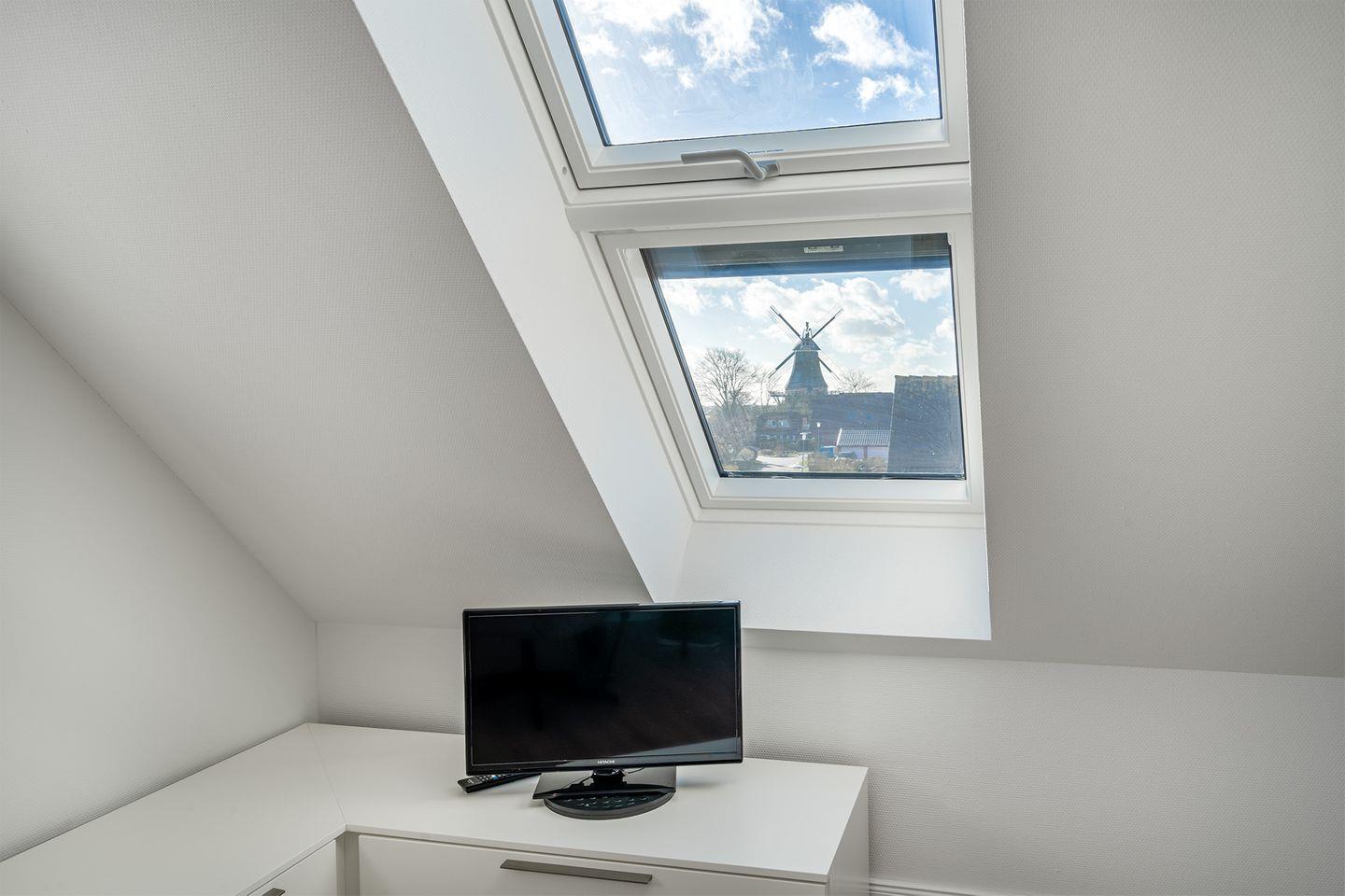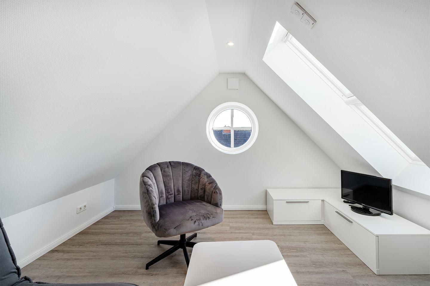 Das Dachgeschoss bietet einen zweiten Fernseher und lädt zu ruhigen Stunden ein.