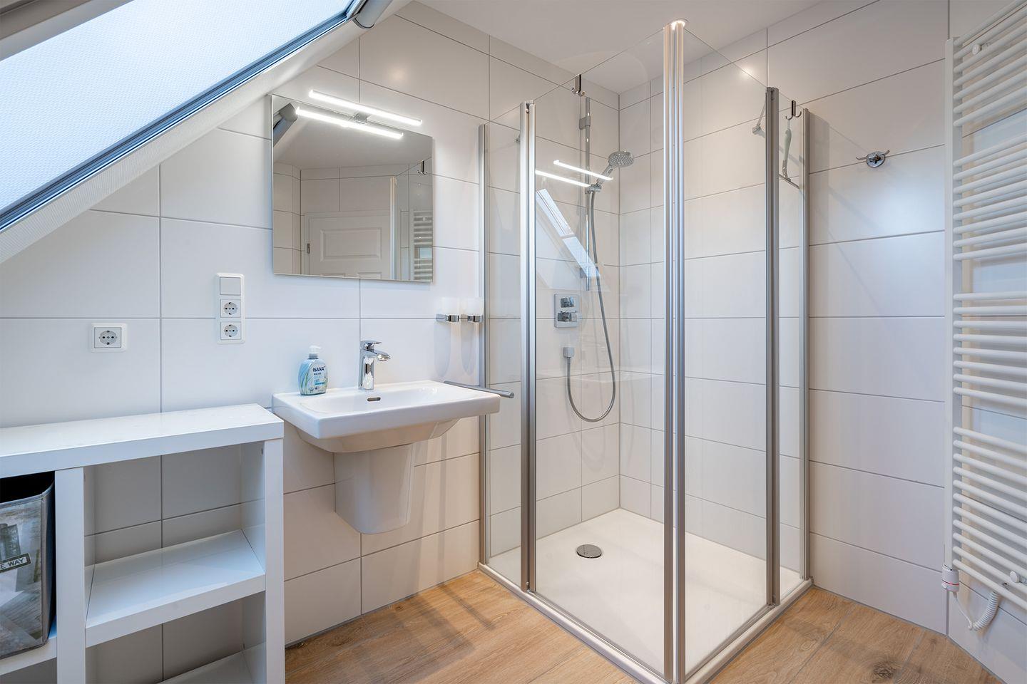 Badezimmer: Mit einer bodengleichen Dusche.