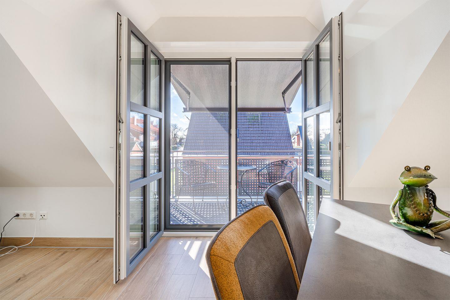 Bei schönem Wetter können Sie die Nordseeluft auf dem Balkon genießen. Dieser ist mit einer elektrischen Markise ausgestattet, die bei Bedarf für perfekten Sonnenschutz sorgt.