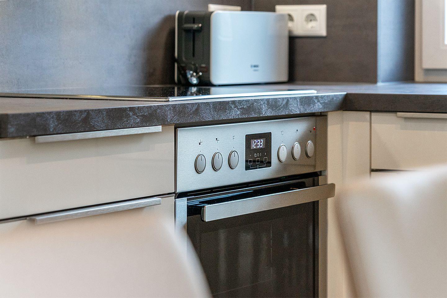 Der lichtdurchflutete, offene Wohn-Essbereich mit moderner Küche lädt zu geselligen Stunden mit der Familie oder Freunden ein. Die Küche bietet alles, was Sie zum Kochen oder für ein gemütliches Frühstück benötigen.