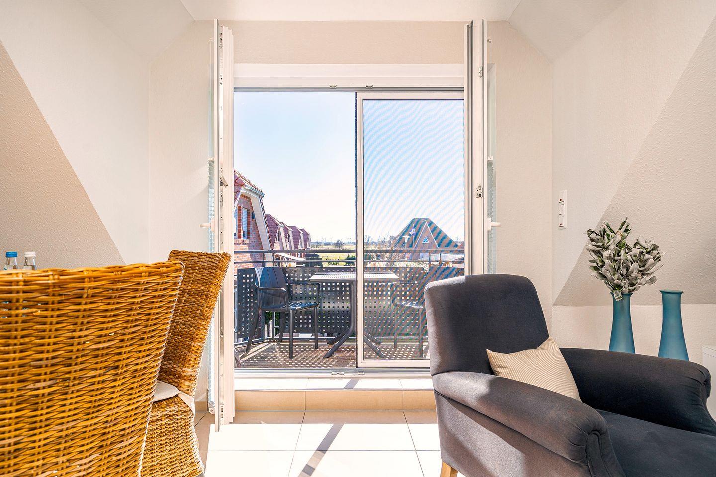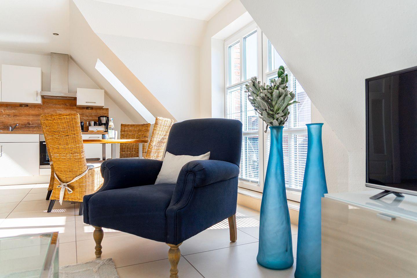 Die Obergeschosswohnung "Schuppen deluxe 04" bietet Ihnen eine ruhige, aber dennoch zentrale Lage im Ortskern von Greetsiel. Mit einer modernen und geschmackvollen Einrichtung wird diese Ferienwohnung zu einem echten Rückzugsort, an dem Sie sich rundum wohlfühlen können.