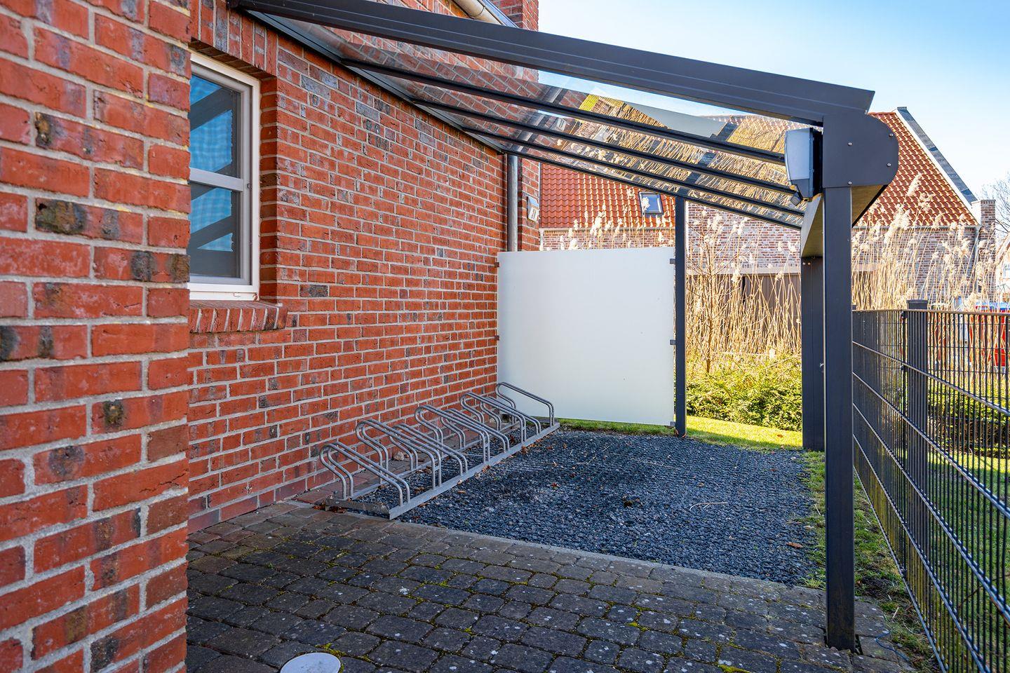 Die Wohnung verfügt außerdem über Annehmlichkeiten wie einen möblierten Balkon, überdachten Fahrradstand mit Anschließ- und Lademöglichkeit für E-Bikes, einen eigenen Parkplatz direkt am Haus, elektrische Jalousien und Insektenschutzgitter.