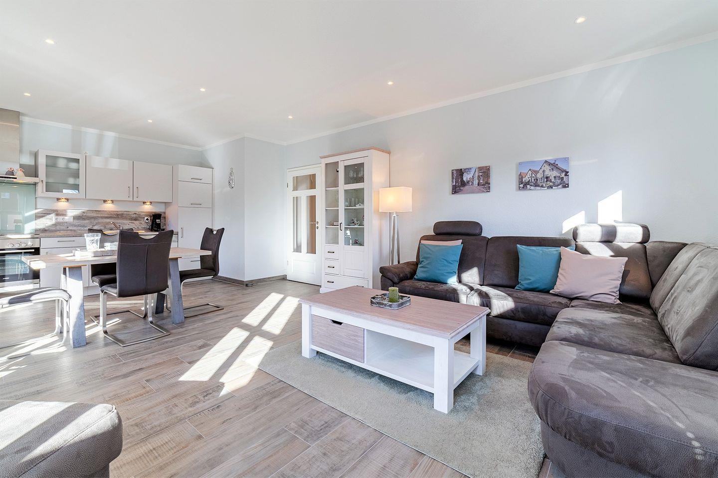 Die Farbgestaltung in den Farben der Küste vermittelt eine gemütliche und wohlige Atmosphäre.