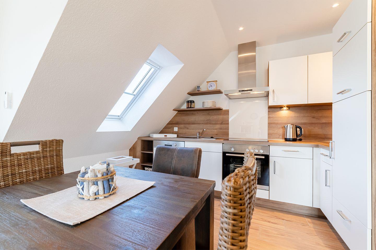 Großzügiger und heller Wohnraum mit integrierter Küche und einem schönen Essplatz