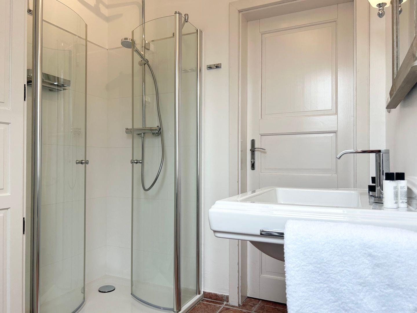 Das Badezimmer - ausgestattet mit Villeroy & Boch - lädt zum Verweilen ein. Die großzügige Terrasse und der eigene Rotbuchen-Garten bieten den perfekten Ort für sonnige Stunden.