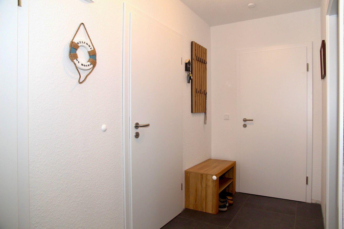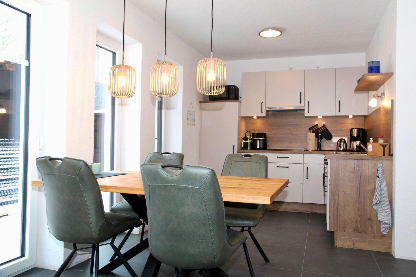 Wir begrüßen Sie in der allergikerfreundlichen Wohnung Cordula, die auf ca. 60 qm Platz für 2 Personen bietet. Der großzügige Wohn- und Essbereich verfügt über Sofa und Sessel, TV, Spiele, Bücher, Bluetoothbox und den Essplatz. Ebenfalls können Sie hier auf die möblierte Terrasse hinaustreten. Angrenzend an den Essbereich folgt die hochwertige Küche, die u.a. mit Herd, Spülmaschine, Kühlschrank mit Gefrierfach, Wasserkocher, Kaffeemaschine, Nespresso-Kapselmaschine, Toaster und Pürierstab ausgestattet ist. Ein Backofen ist nicht vorhanden, dafür aber Mikrowelle und Airfryer.