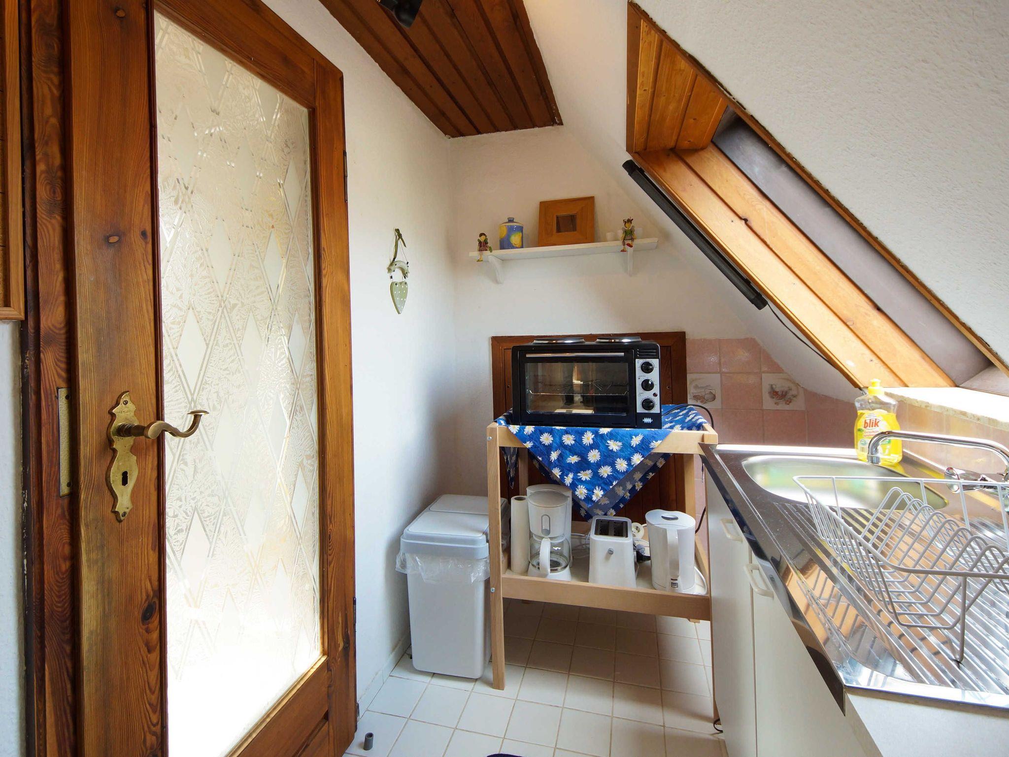 Unser Schwalbennest ist die günstige Alternative zu unserer Ferienwohnung und liegt im Dachgeschoss. Auf ca. 40m² Wohnfläche finden 2 - 4 Erwachsene Platz. Es gibt einen Schlafraum mit ausziehbarem Doppelbett und einer Sitzecke. Im Wohnzimmer gibt es eine Schlafcouch und den Flachbildfernseher. Unser Badezimmer verfügt über eine Dusche. Die Abende können Sie in unserem Schwalbennest geniessen und mal den Alltag vergessen, einfach Ihre Blicke schweifen lassen. Nutzen Sie auch gern unser Saunahaus - Preise sind mit dem Vermieter Herrn Warnke abzusprechen. Ein Wäschepaket kann gegen einen Aufpreis von 20 Euro dazu gebucht werden.