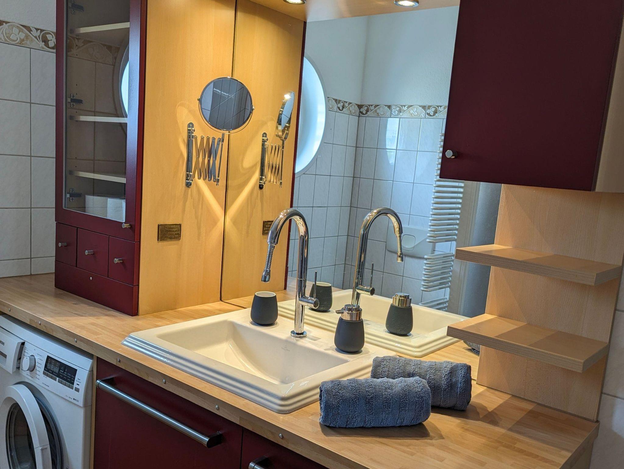 • Staubsauger, Wäscheständer, Strandmuschel, Kinderhochstuhl, Balkonmöbel, Zusatzdecken und Kissen, Safe (Schlüssel am ausgehändigten -bund) stehen im Einbauschrank zur Verfügung