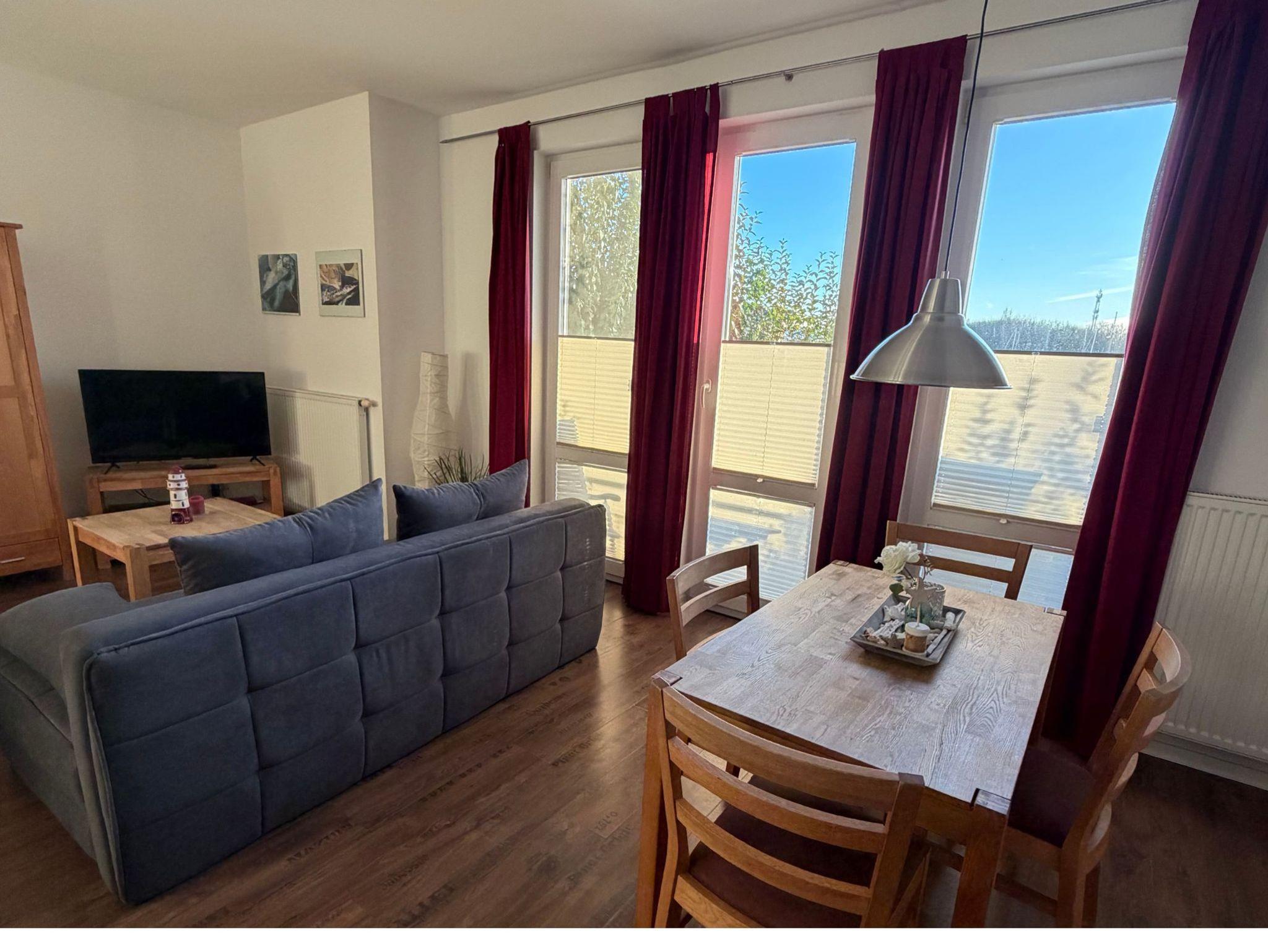 Die Ferienwohnung befindet sich im Parterre des Hauses in der Marina am Ryck. Ein kombinierter Wohn-Schlafraum mit TV/Radio und einem Doppelbett (Betten können auch auseinander gestellt werden), eine Schlafcouch und Sessel, eine komfortable offene Küche mit Esstisch und ein Bad mit Dusche/WC bieten Platz für bis zu 4 Personen. Vom Zimmer kommen Sie auf die möblierte Terrasse mit einem Geländer. Bettwäsche und Handtücher sind vorhanden. Internet W-LAN kostenlos. Kinderhochstuhl und Kinderreisebett können nach Absprache kostenlos zur Verfügung gestellt werden. Anreise ab 15 Uhr oder nach Absprache eventuell früher, Abreise bis 10.00 Uhr.