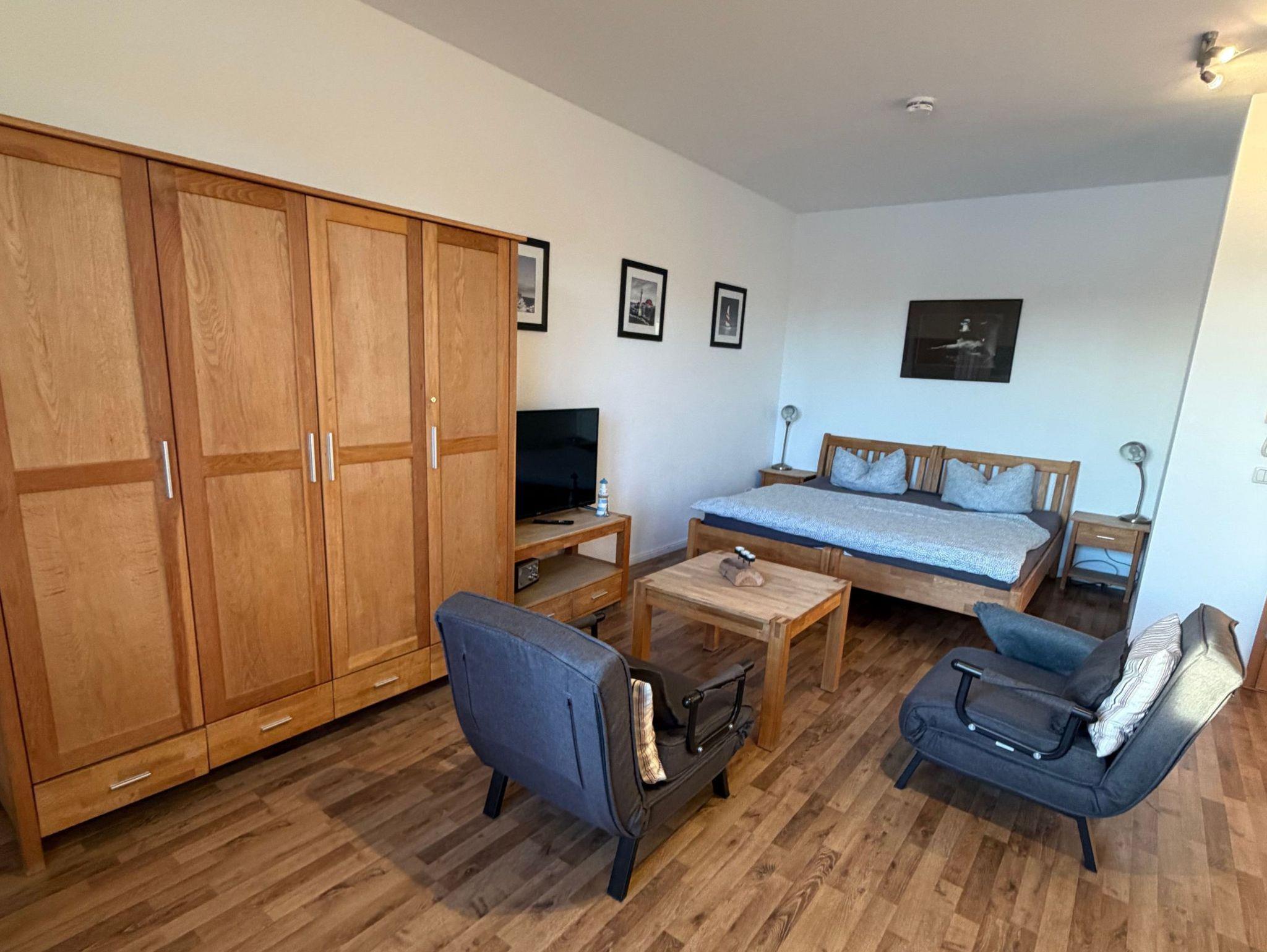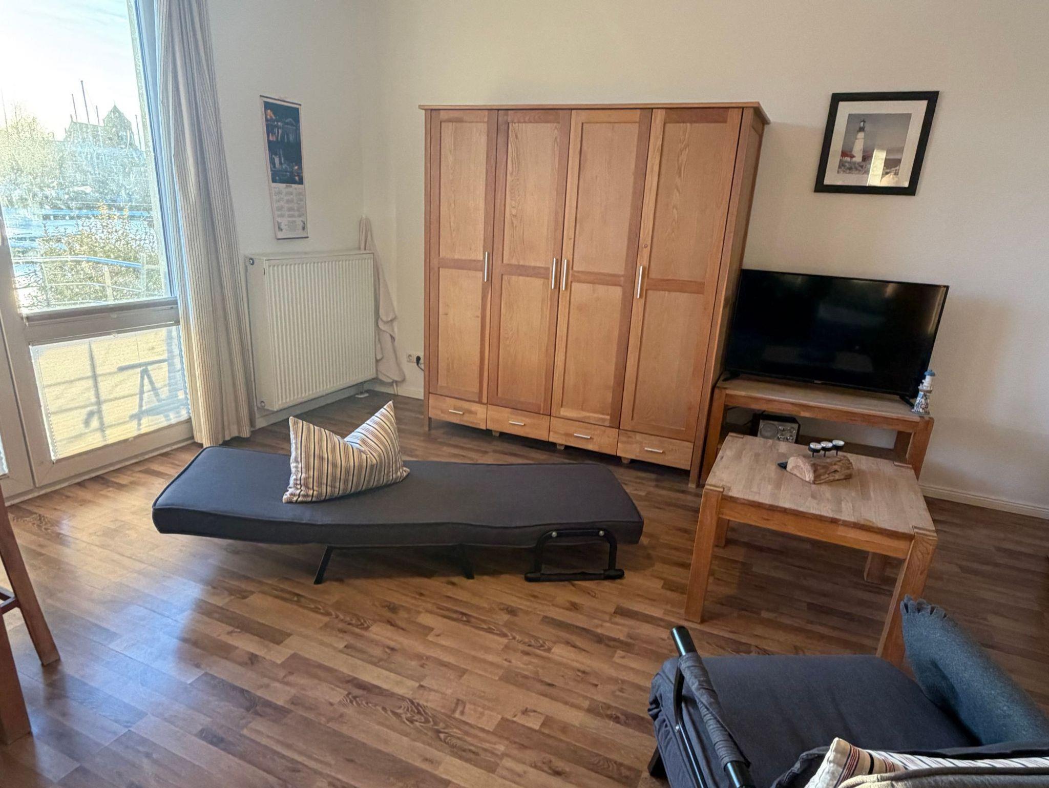 Die Ferienwohnung befindet sich im Parterre des Hauses in der Marina am Ryck. Ein kombinierter Wohn-Schlafraum mit TV/Radio und einer Schlafnische mit zwei Einzelbetten (auch zusammenstellbar), eine komfortable Küche mit Esstisch und ein Bad mit Dusche/WC bieten Platz für 2 Personen. Vom Zimmer kommen Sie auf die möblierte Terrasse mit einem Geländer. Bettwäsche und Handtücher sind vorhanden. Internet W-LAN kostenlos. Kinderhochstuhl und Kinderreisebett können kostenlos zur Verfügung gestellt werden. Anreise nach Absprache, Abreise bis 10.00 Uhr.