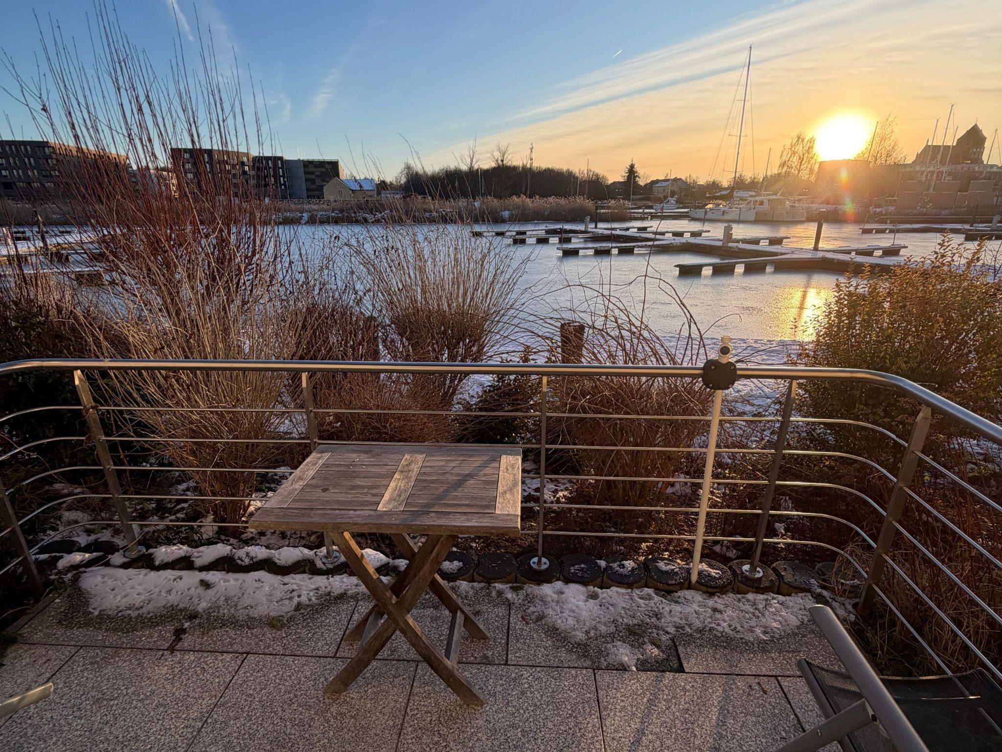 Von der sehr ruhig gelegenen Terrasse können sie die Schiffe im Hafen beobachten. In der Wohnküche schlafen sie im großen 1,80m Bett und auch bei geöffnetem Fenster (Fliegengitter vorhanden), ohne von lauten Geräuschen oder Verkehr geweckt zu werden.