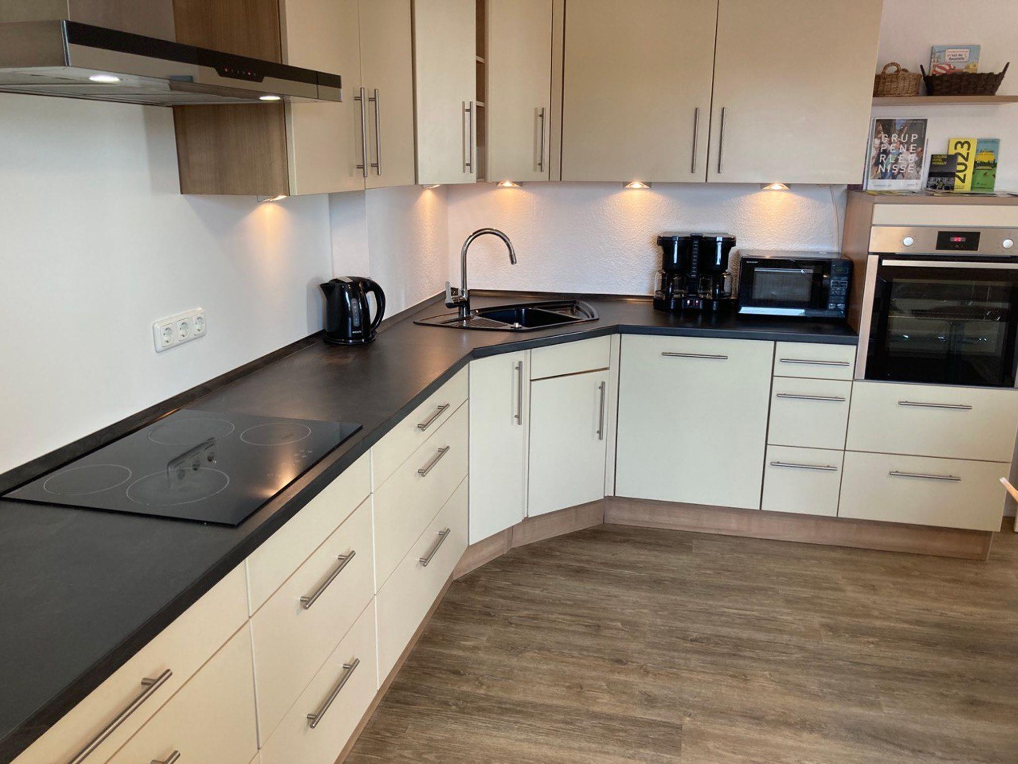 Das Penthouse ist modern und hochwertig ausgestattet. Auf großzügigen 125qm befinden sich vier Schlafzimmer. Die vier Schlafzimmer sind jeweils mit einem französischen Doppelbett, bei Bedarf mit weiteren Einzelbetten, einem Flachbild-TV sowie jeweils mit einem Einzelbett ausgestattet. Im Wohnbereich ist ein Lounge Sofa zum Verweilen und Chillen sowie ein Flachbild-TV vorhanden. Ein schöner, gemütlicher Balkon lädt zum Verweilen ein. Die Küche ist mit allen wichtigen Küchenutensilien ausgestattet. Auch zwei Esstische befinden sich in der Wohn- /Essküche. Das eine Badezimmer ist mit Dusche, Badewanne, WC, Waschmaschine und Kondenstrockner ausgestattet, das zweite Badezimmer ist mit großer, bodenebener Dusche sowie WC ausgestattet. Die gesamte Wohneinheit befindet sich im Obergeschoß. Selbstverständlich sind Bettwäsche und Handtücher inklusive. Das WLAN ist kostenfrei verfügbar.