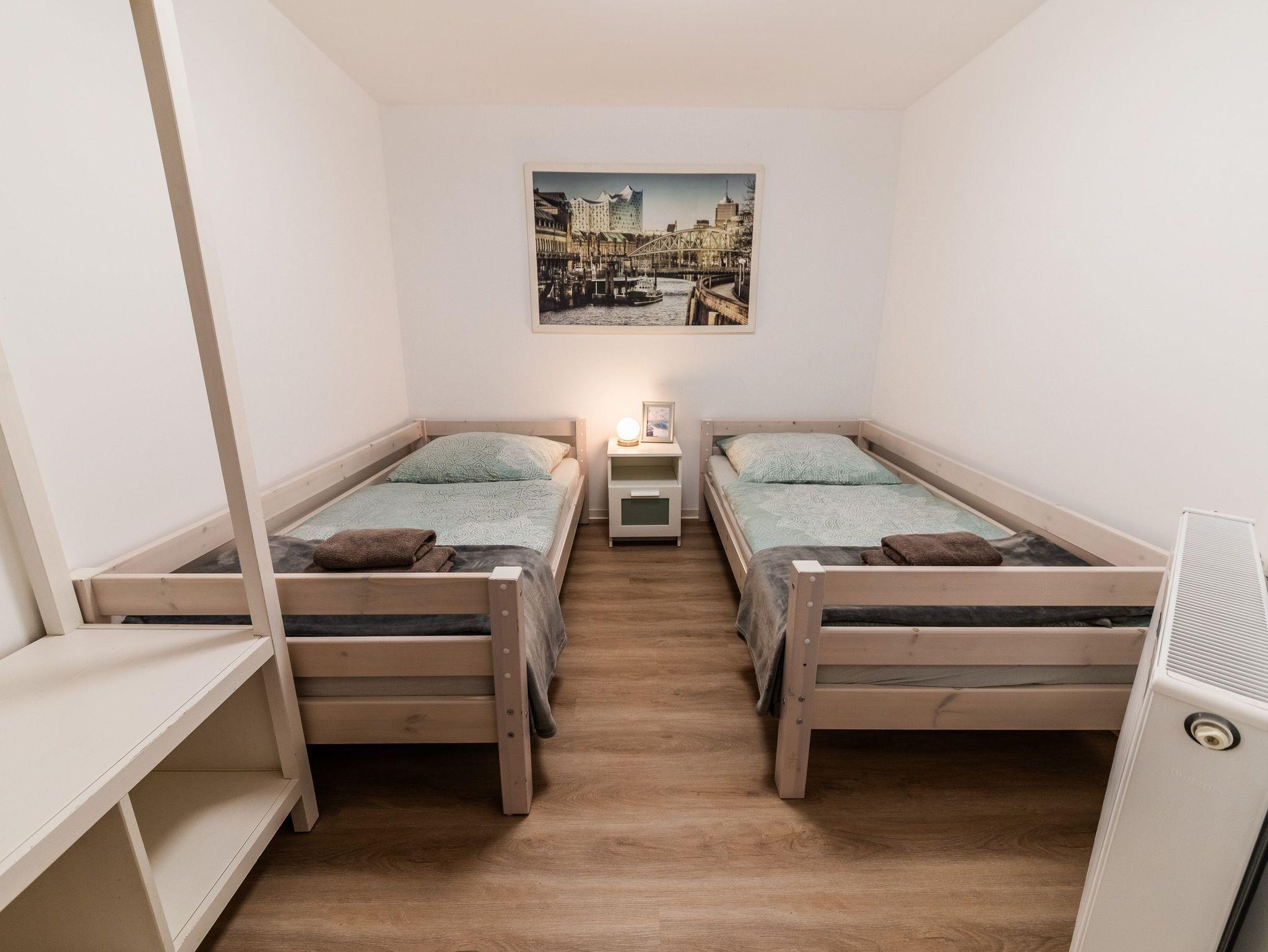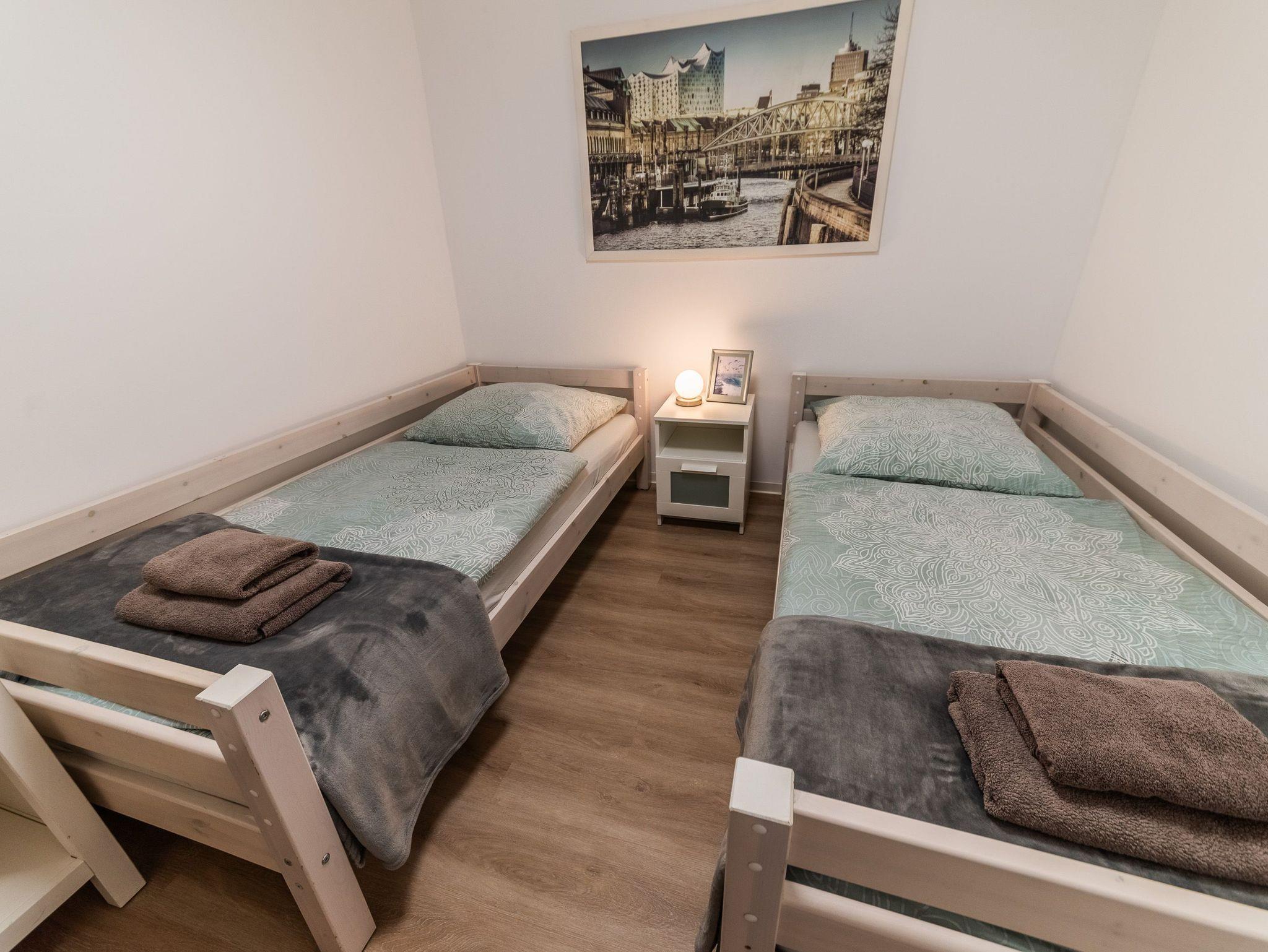 Die Ferienwohnung Mond ist für bis zu 4 Personen gedacht und verfügt über zwei Schlafzimmer mit einem Doppelbett von 140x200 und zwei Einzelbetten.