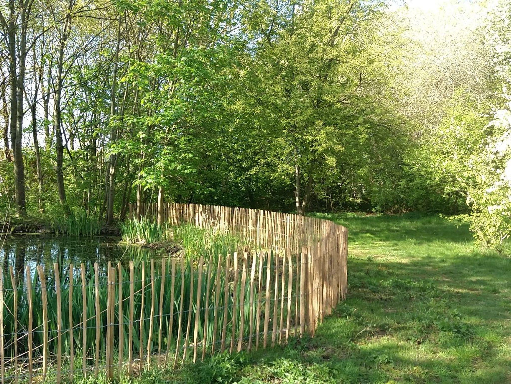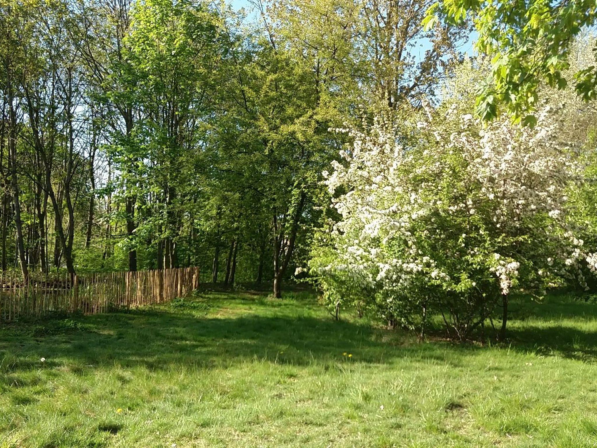 Die Wohnung hat einen eigenen Eingang, zudem eine Frühstücksterrasse mit offenem Kamin, eine ca. 1.400 m2 große Flächenkombination aus Spielrasen, kleinem Waldstück und ca. 150 m2 eingezäunten Wildteich.
